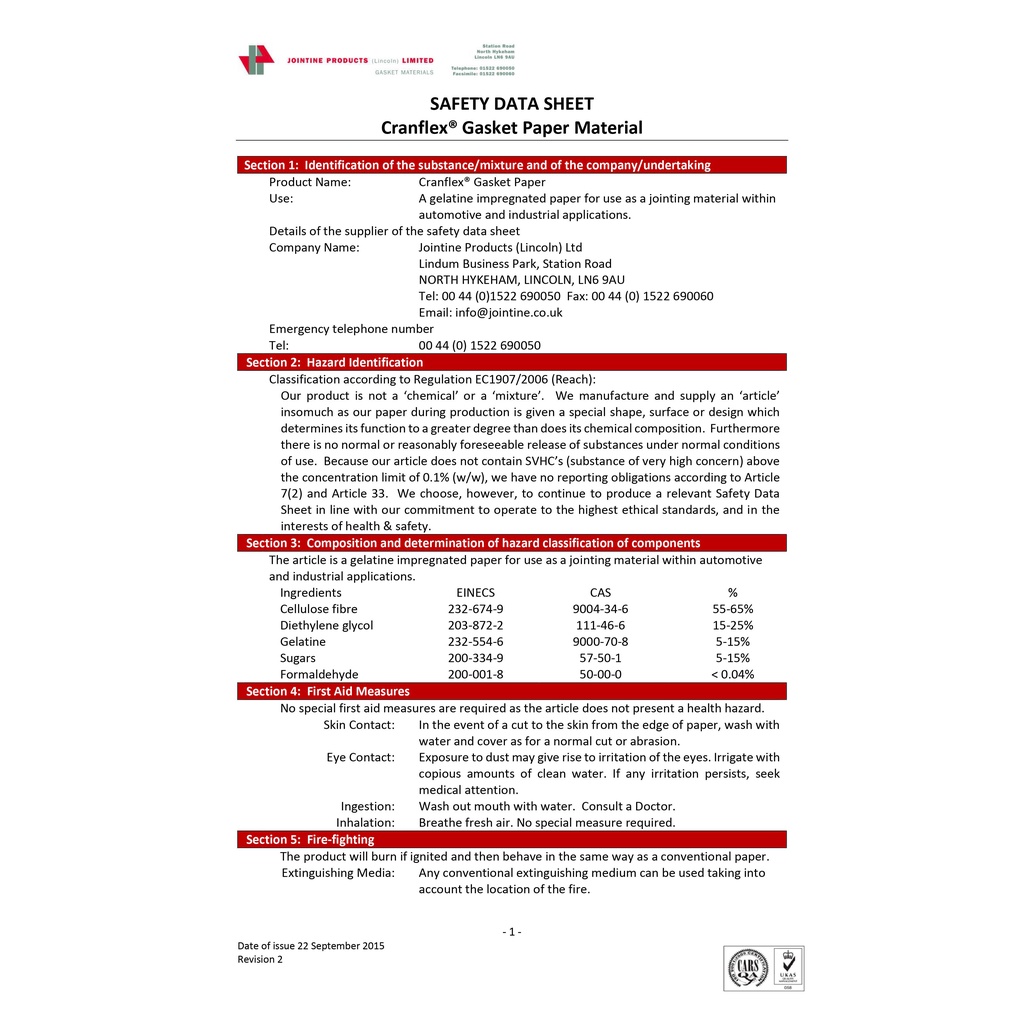 CRANFLEX Kertas Gasket Paper 0.8mm Oil Resistance Fuel Resistance for Car,Tractor,Machinery,Truck,Motor,Kereta Lori