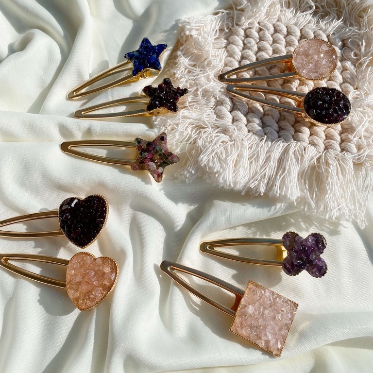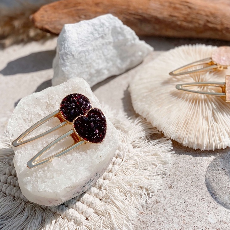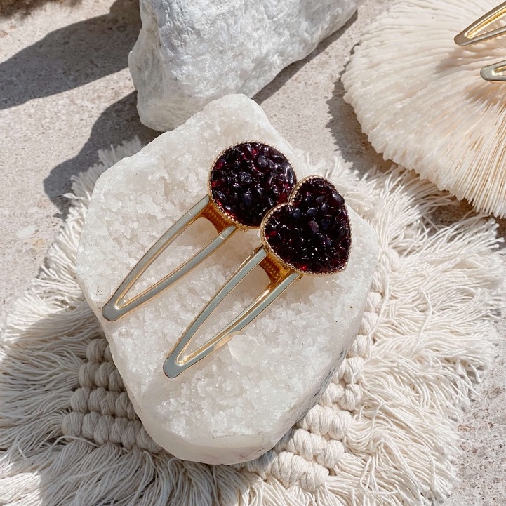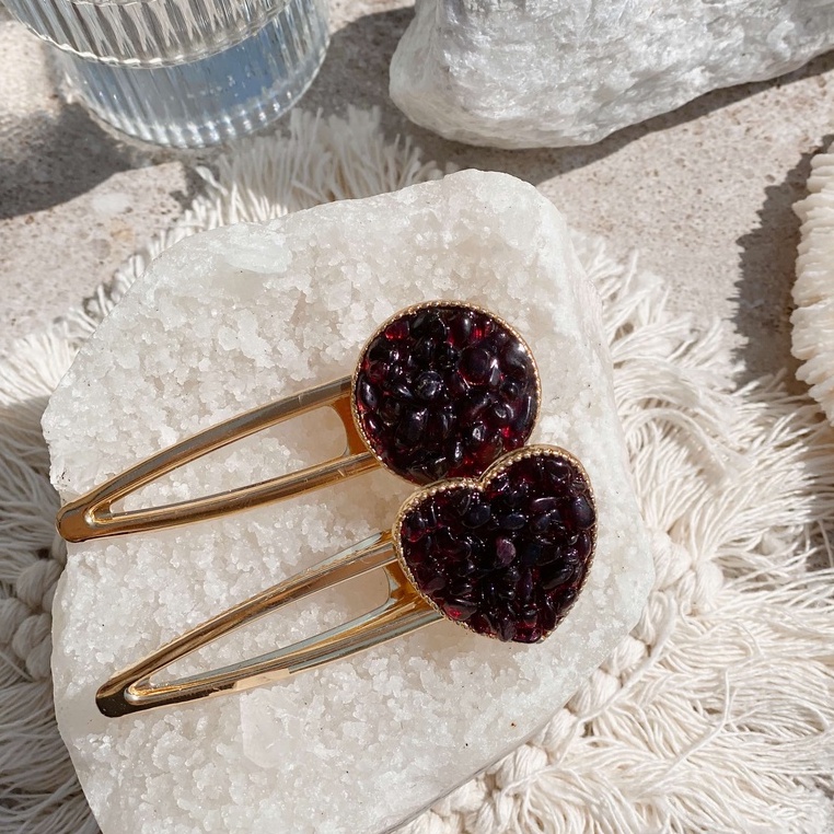 CRISTY CRYSTALS Crystals Hair Clip (Garnets & Rose Quartz) Hair Accessories hairpin female Korean style Xiao Hong Shu
