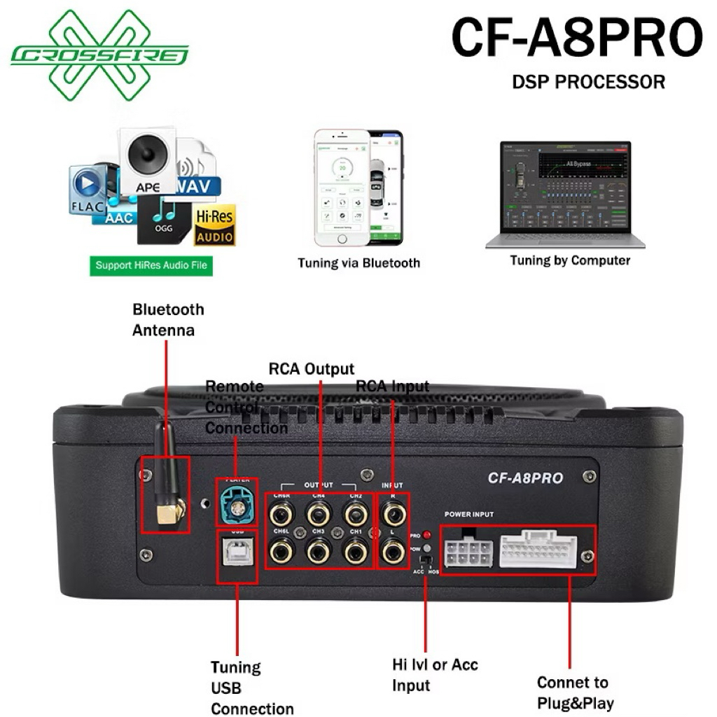 CROSSFIRE DSP AMPLIFIER ACTIVE SUBWOOFER 10 INCH 3 IN 1 SERIES BUILT CF-A8PRO