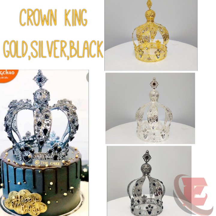 TOPPER KEK CROWN KING HITAM | EMAS | PERAK | 10CM
