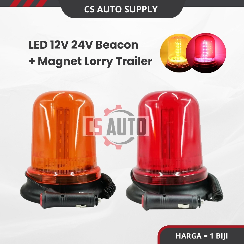CS 1pc Lampu Roof Beacon LED 12V 24V Yellow Red Light Lamp Lorry Trailer Treler Lori Magnet Adaptor kelip Atas Cabin