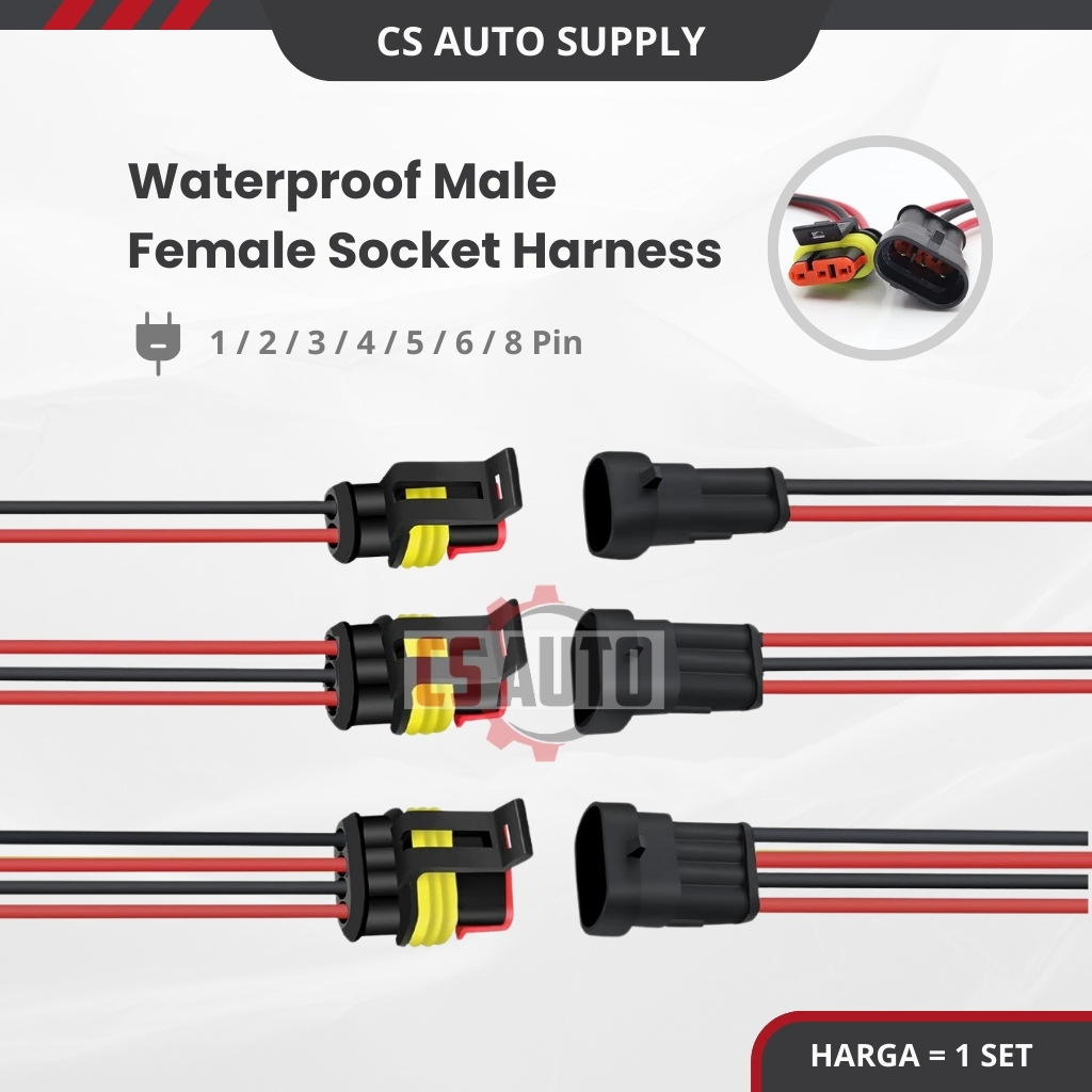 CS Waterproof Male Female Socket Wayar Lampu Sambung Connector Plug With Wire Cables Harness Kalis Air (1 Set)