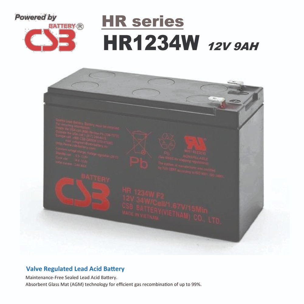 CSB HR1234W 12V 9Ah 34W Maintenance Free Rechargeable AGM SLA Suitable for Solar UPS Backup