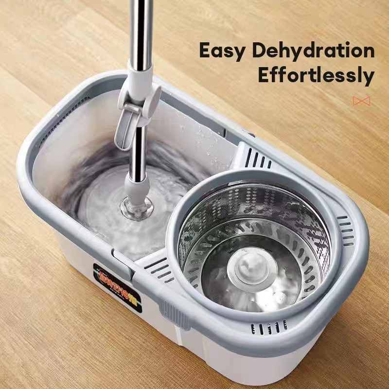 CS_ 2 MOP HEAD Round Spin Mop Set With Bucket 360 Rotating Floor Mop Quick Dry Wash Mop Lantai Mop Spinner