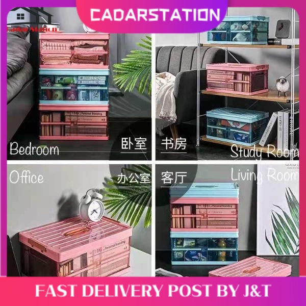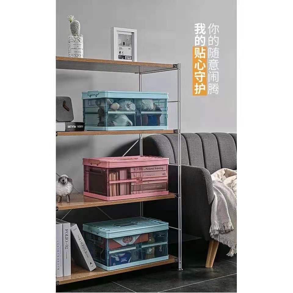 CS_Folding Double Door Storage Box Transparent Plastic Storage Box With Lid For Toys, Clothes Multifunctional Storage