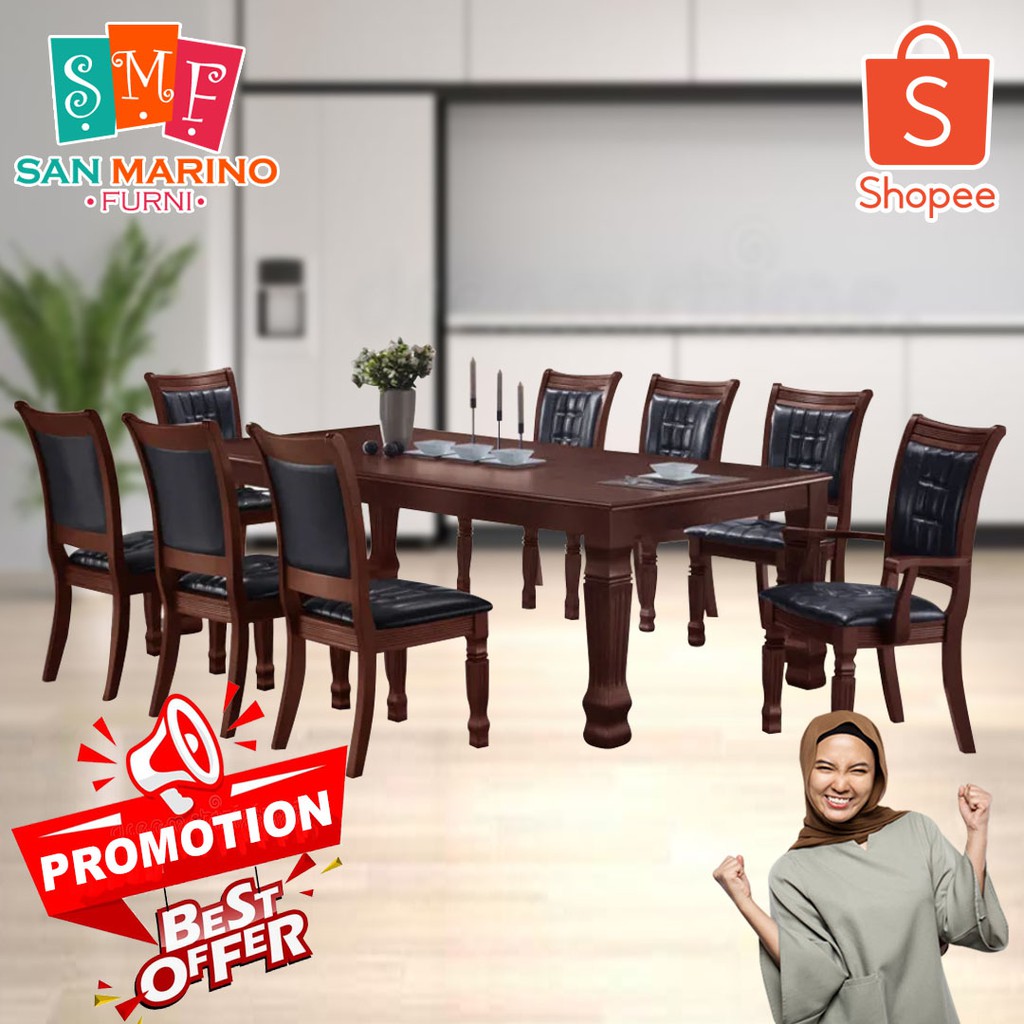 CT102NV CC3388 1+8 Seater Solid Wood Dining Table With Italy Leather Chair Set Kayu / Dining Table / Dining Chair