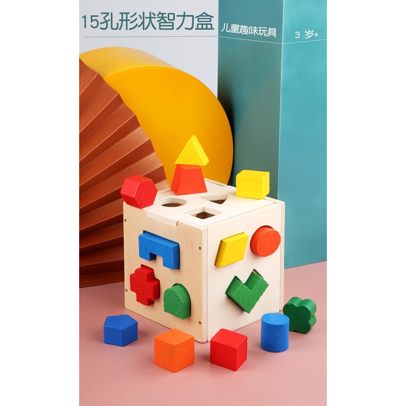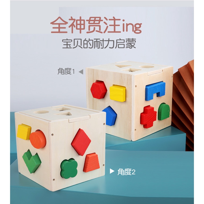 CTD Geometry Box Wooden Baby Newborn Activity Cube Toys Early Learning Shape Sorting Box