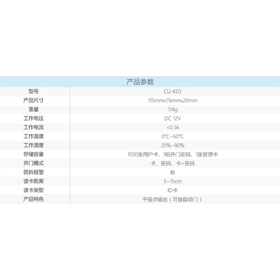 CU - K03 / S50 Door Access Control System RFID Reader Keypad
