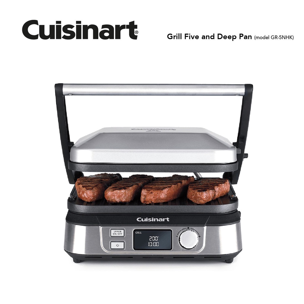 CUISINART Healthy Digital Griddler Grill Five and Deep Pan GR-5NHK Removable Plates BBQ Drip Tray Easy Cleaning