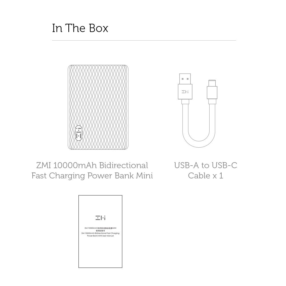 CUKTECH ZMI 10000mAh MINI Power Bank Bidirectional Fast Charging Include USB Type-C Cable