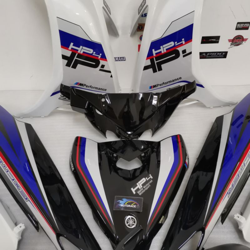 CUSTOM COVER SET LC135 V4 V5 V6 V7 YAMAHA BLACK WHITE WITH STICKER EXCITER BMW PERFORMANCE 129