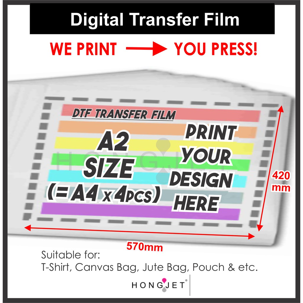 CUSTOM DTF PRINTING- Digital Transfer Film A2 Size, Iron On, Fusion Print DTF Heat Transfer Film, HybridPrint, HD Print