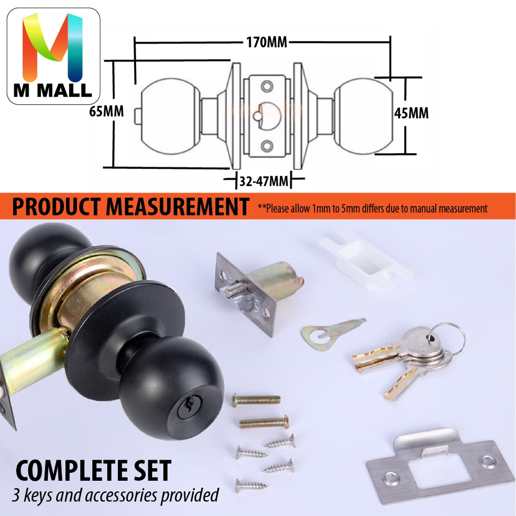 CYLINDRICAL DOOR LOCK AMAN V-5871MB BLACK/ DIAMOND KNOB 8900 GREEN BLUE / 587BL BLACK / 587AC BROWN / 5871SS / 5871AC