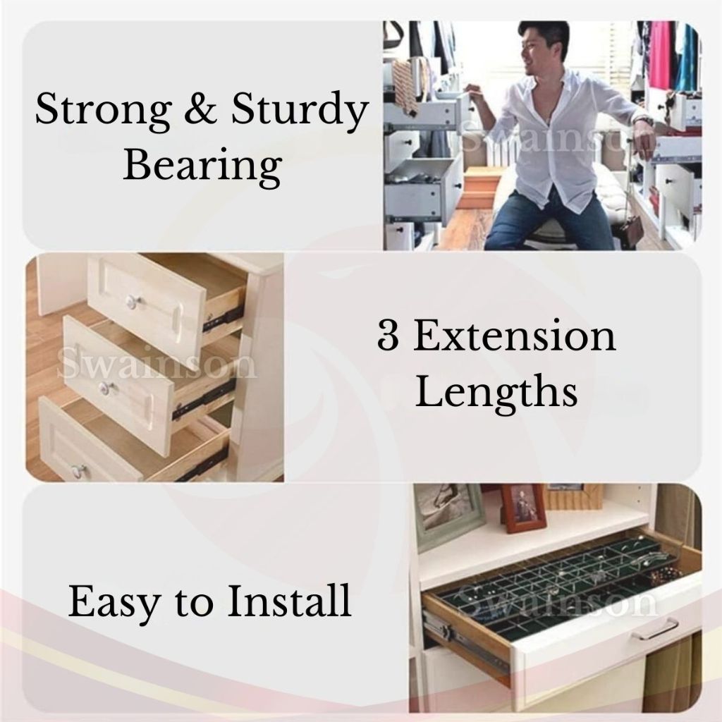 Cabinet Drawer Slide Heavy Duty Soft Close & Non Soft Close Ball Bearing Extension (10"-26")