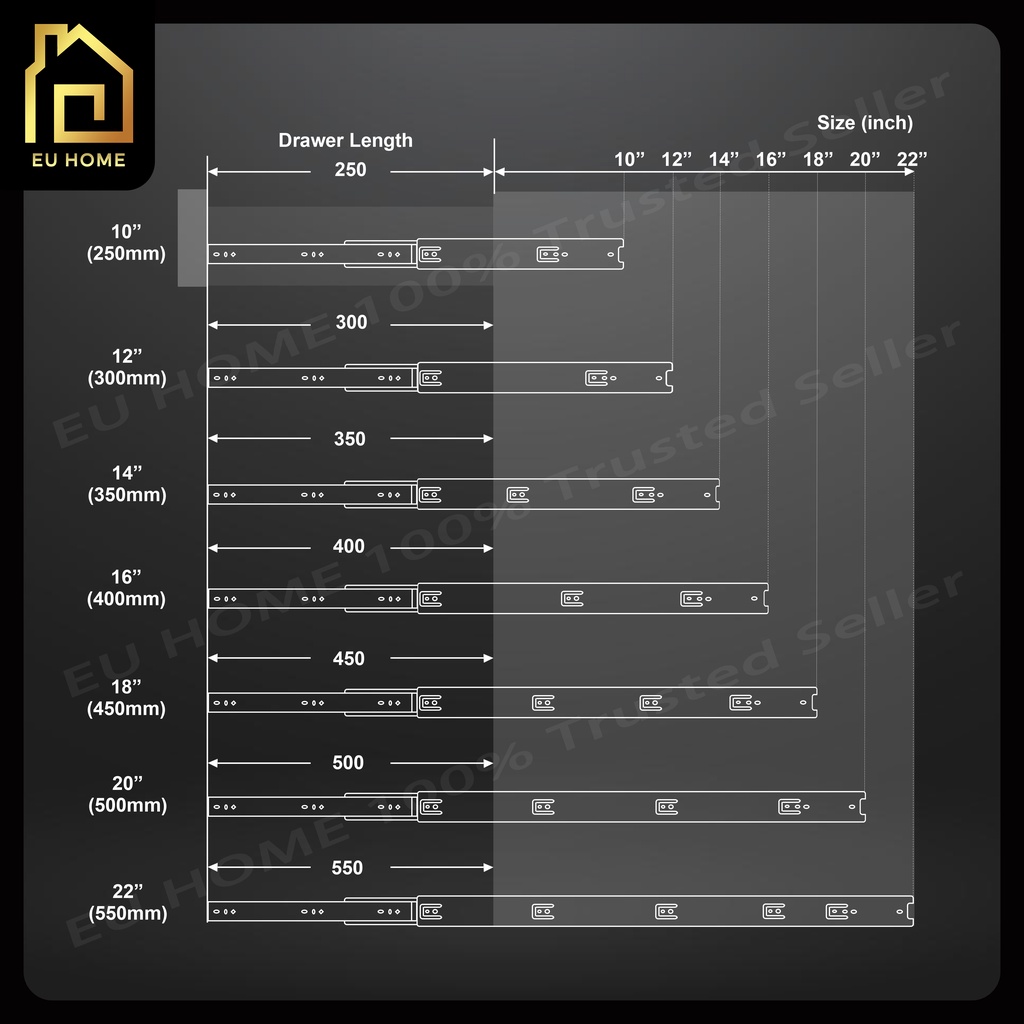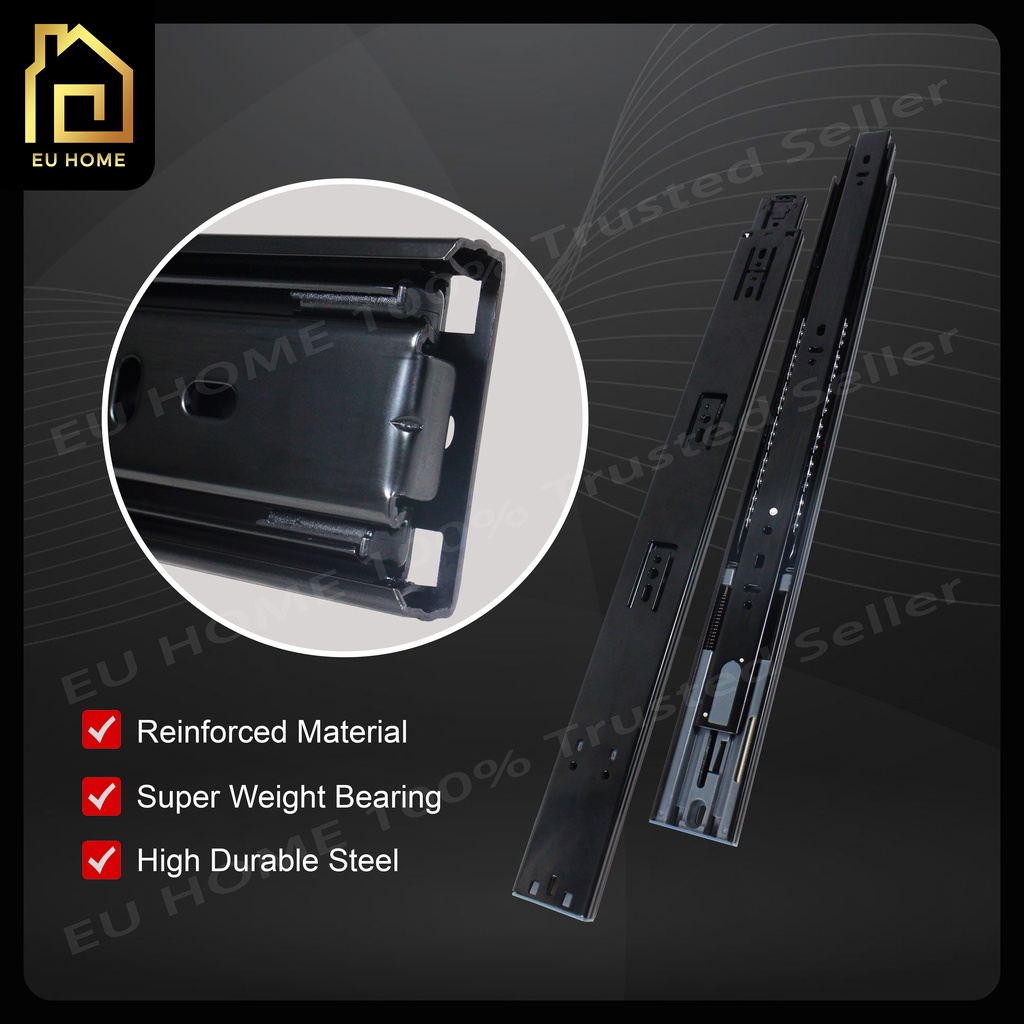 Cabinet Heavy Duty Ball Bearing Full Extension Slide/Drawer Slide/Soft Close Roller Rail / Roda Besi Laci