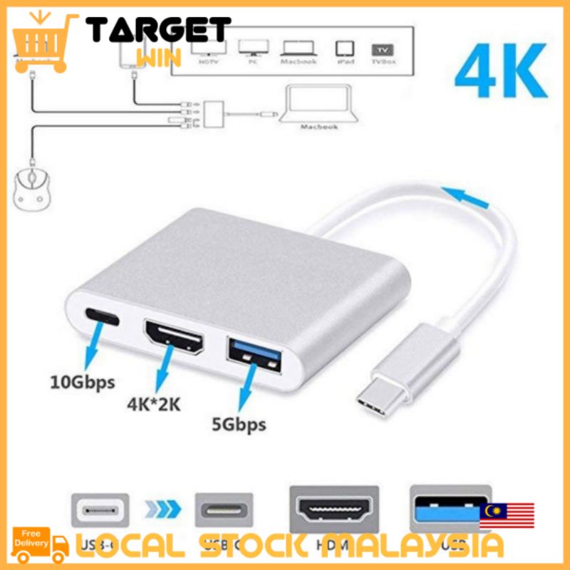 Cable Adapter Converter Gaming Adapter Hub USB Type C to HDMI Mac 3 in 1 HUB 4K USB Type C to HDMI x 1pcs