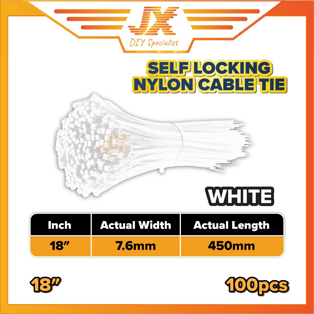 Cable Ties Nylon Wire 100pcs 18" Pengikat Wayar Kabel Tie Locking Zip Black White Garden Home Wiring Bind