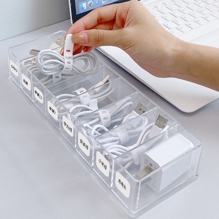 Cable Wire Storage Box Desk Stationary Organizer Transparent Multi Slot Divider