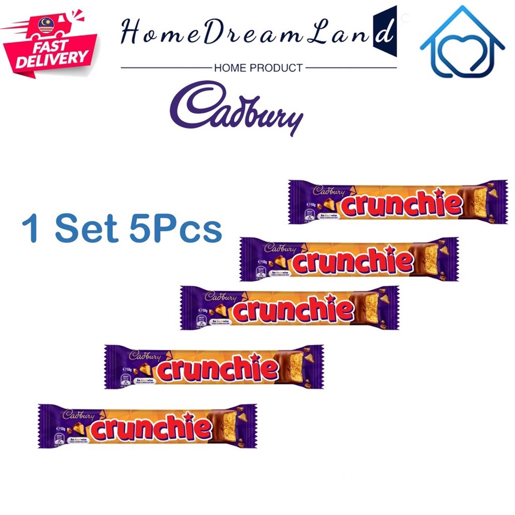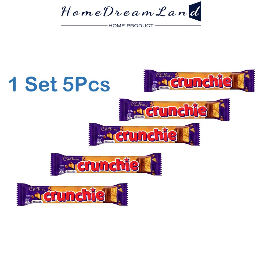 Cadbury Crunchie Chocolate Chunky Gold Bar of Delicious Honeycomb Smothered 50G (1 Set 5pcs)