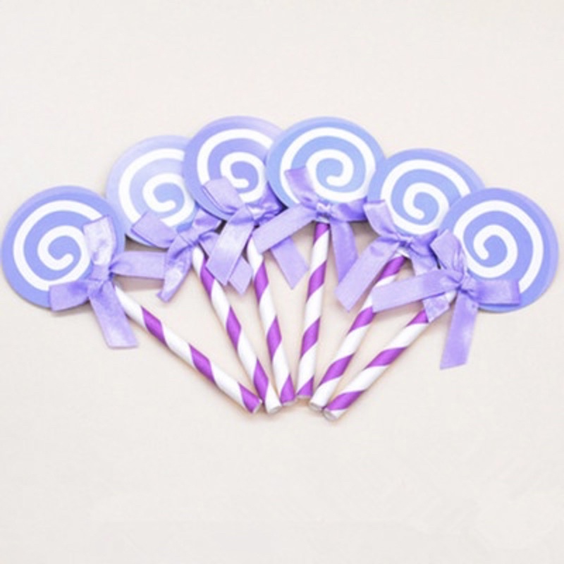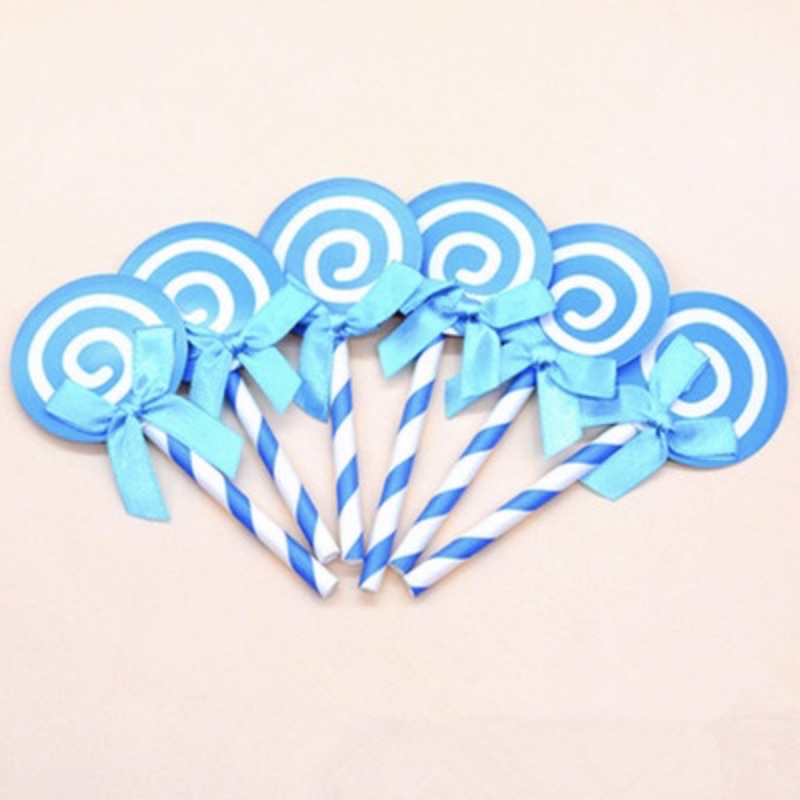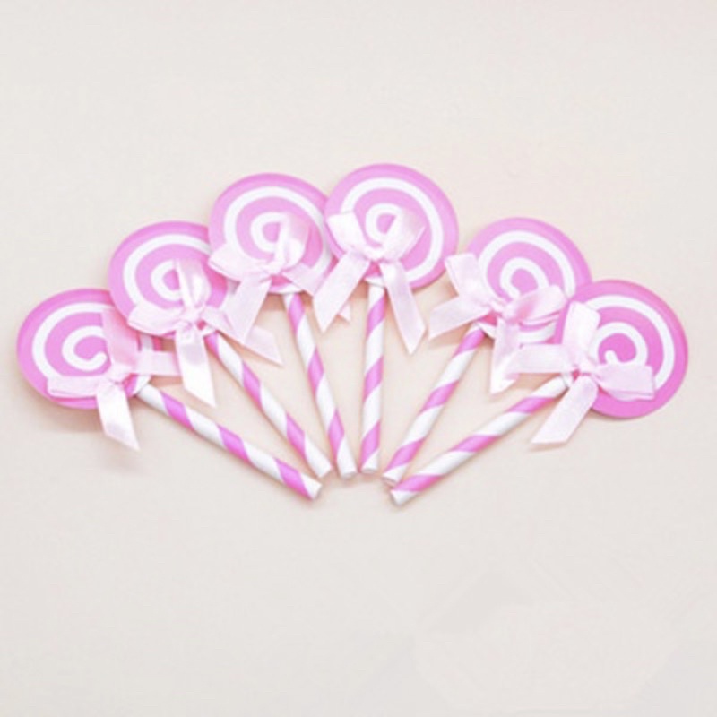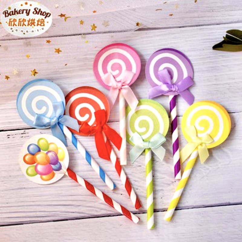 6 Pcs Artificial Paperboard Ribbon Lollipop Cake Topper Cake Topper Decoration Lollipop Candy Bow Color Cute Baby Kids Lollipop Candy Cake Decoration/
