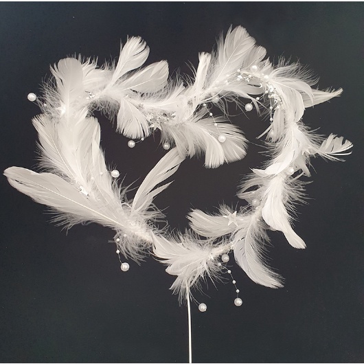 Cake Topper Crystal Feather Heart Shape Cake Topper/Cute Beautiful Valentine Wedding Birthday Topper