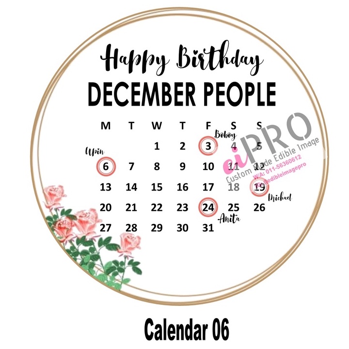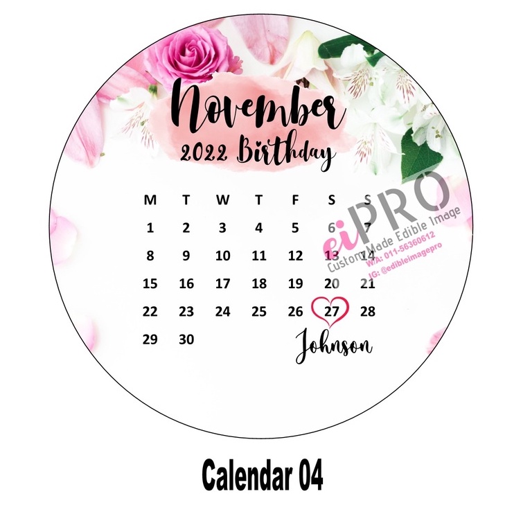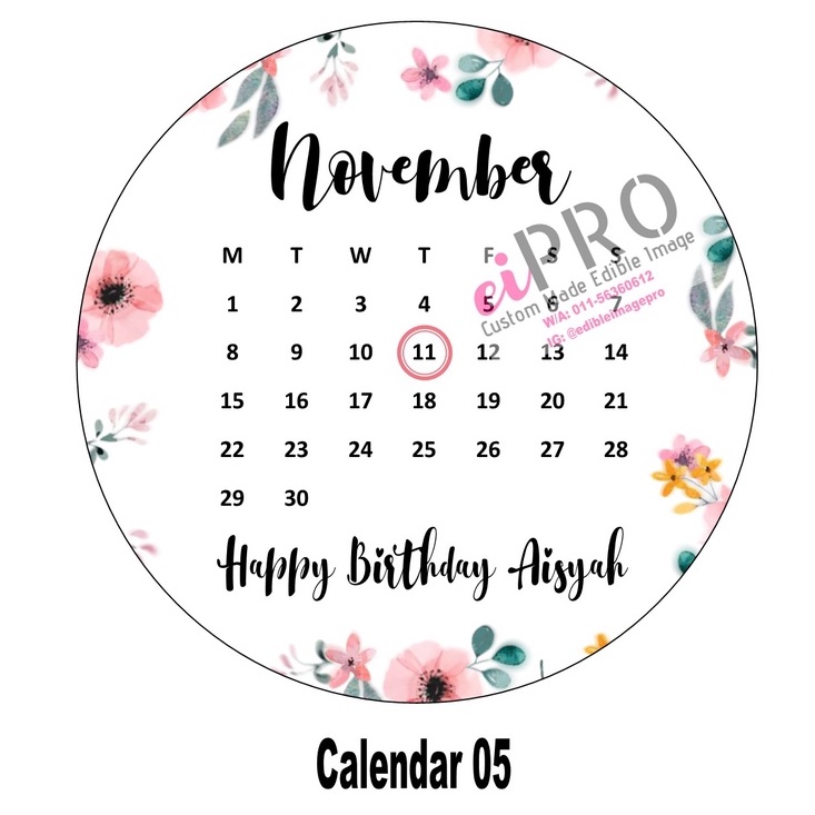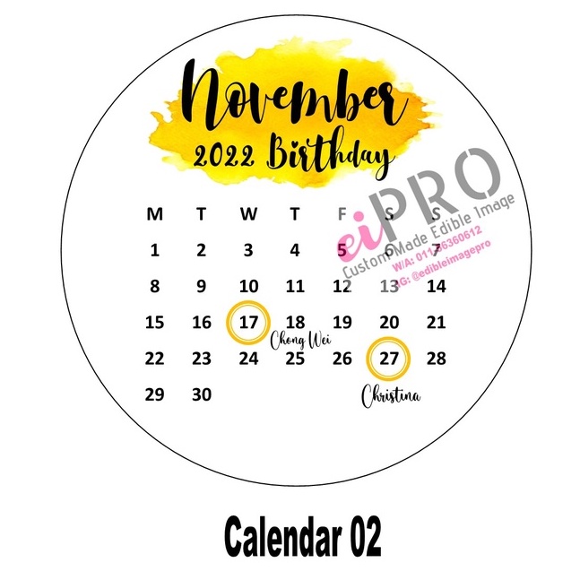 Calendar Edible Image (Ready Design)