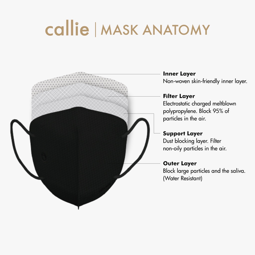 Callie 3D Earloop Respirator Surgical Mask - Black (20 Pcs)