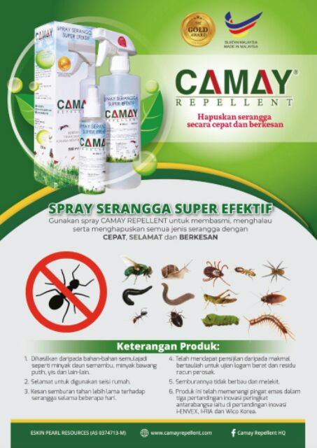 Camay Spray Serangga Super Efektif |Spray kutu Kucing| Spray Lipas kereta | Spray Lalat