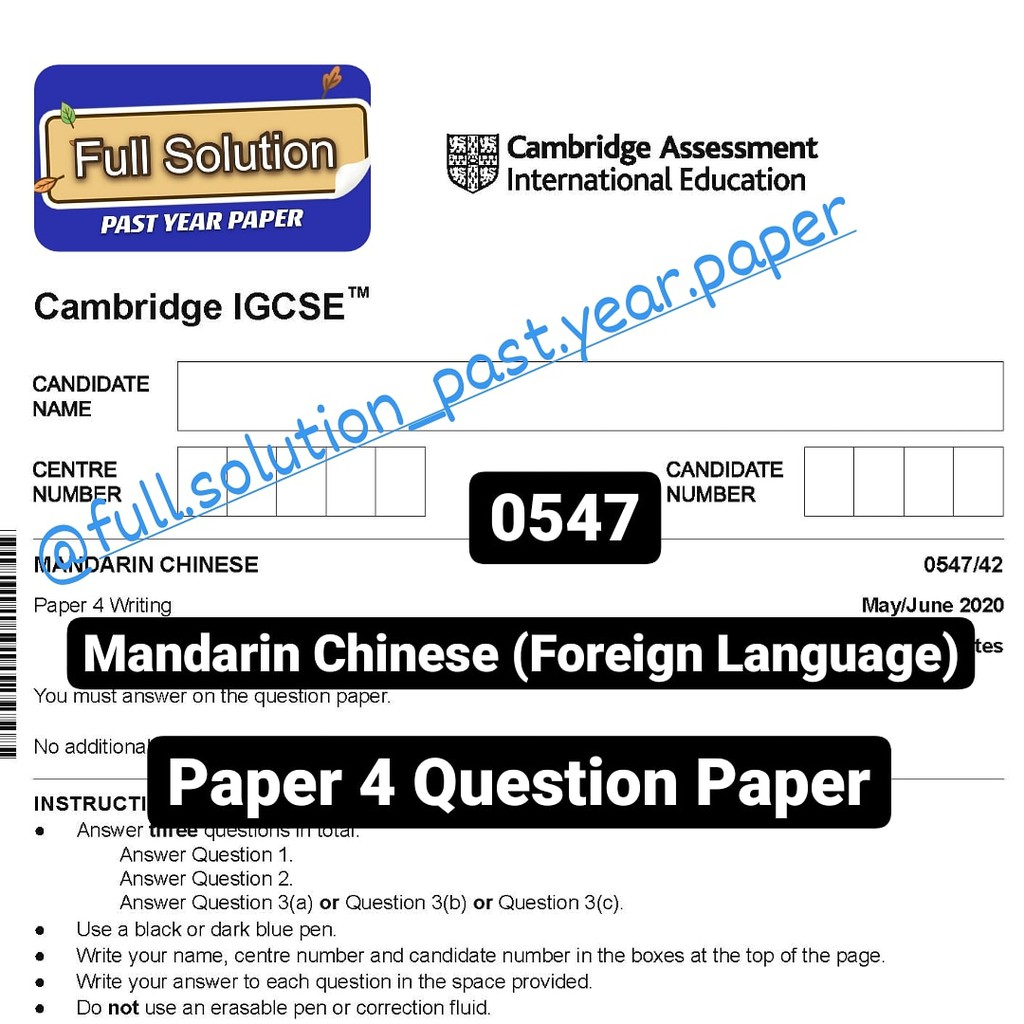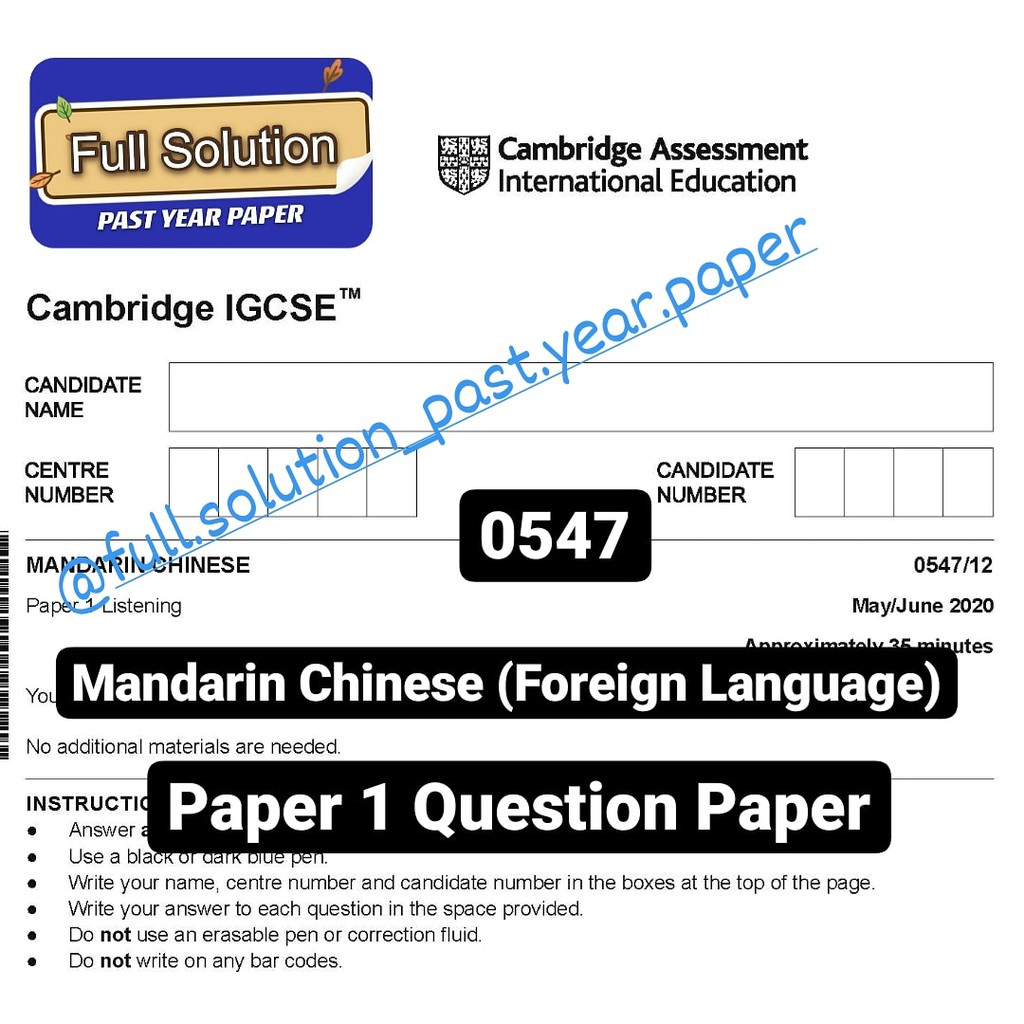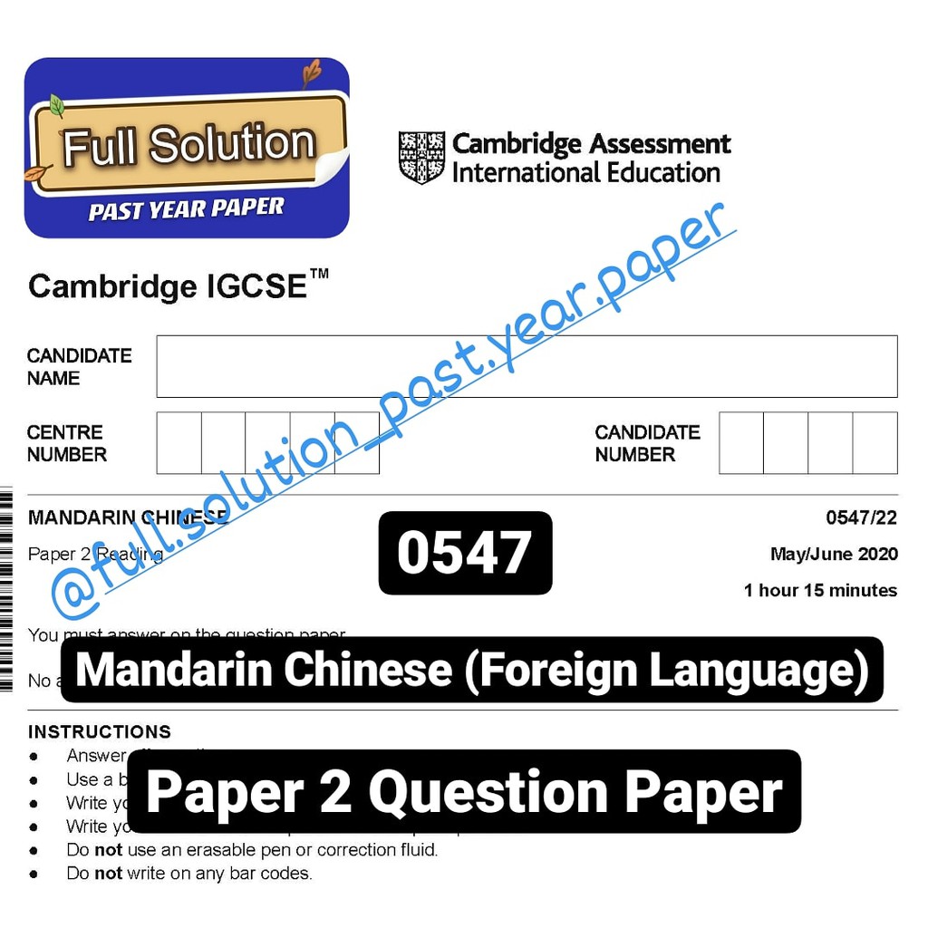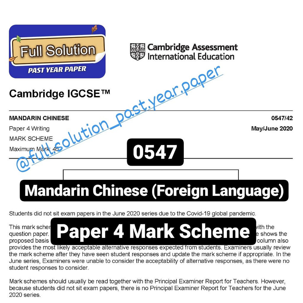 Cambridge IGCSE 0547 Mandarin Chinese Past Year [Question Paper + Mark Scheme]
