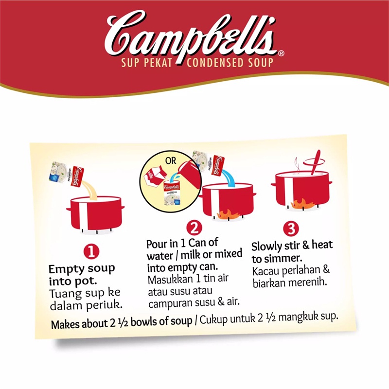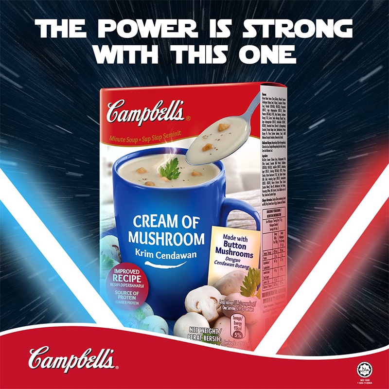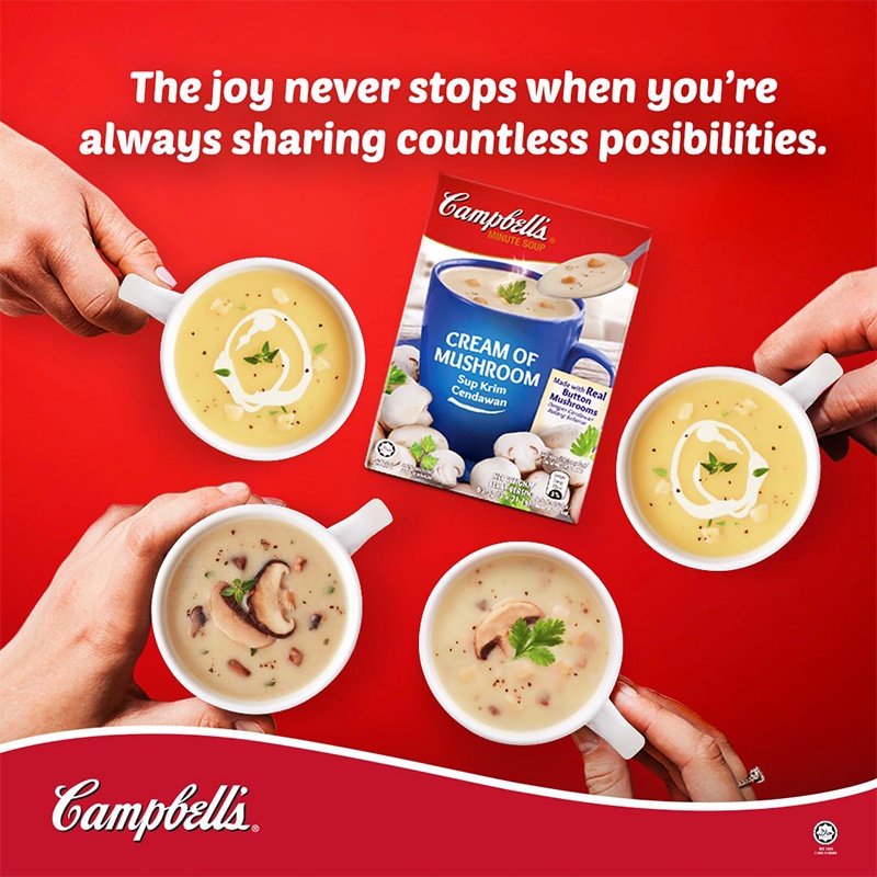 Campbell's Cream of Mushroom 3x21.1g Instant Soup Minute Soup Ready Stock Sup Segera Cendawan