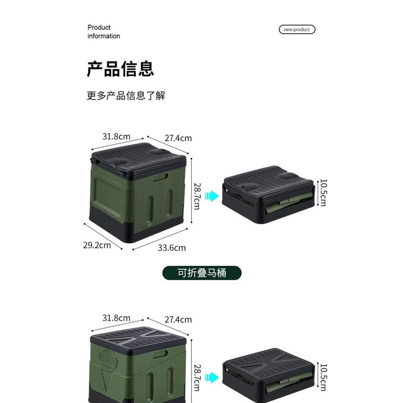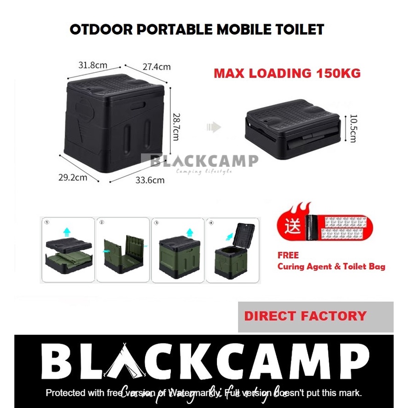 Camping Mobile Toilet Foldable Folding Portable Outdoor Picnic Tandas Lipat Black/Curing Agent X2