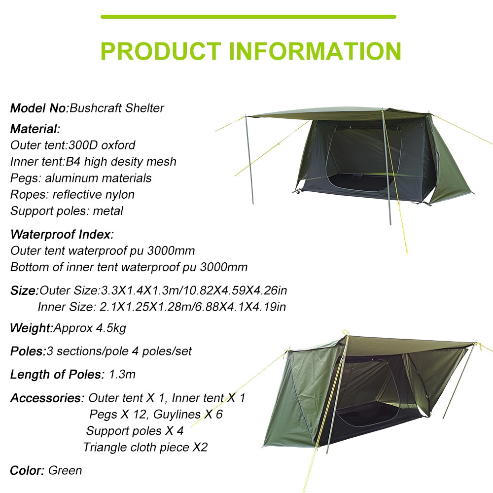 Camping Shelter Tent Baker Tent Outdoor Style Multi -Functional Bushcraft Tent 3 Seasons Tent Woodland Warm Tent Backwoods Tent 2 Man Tents One Men Tent for Hiking