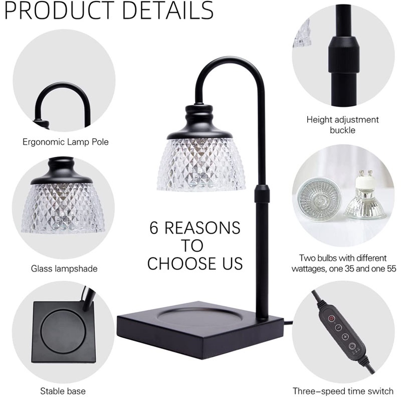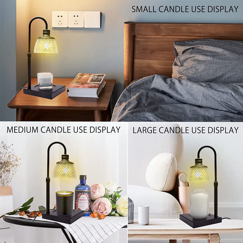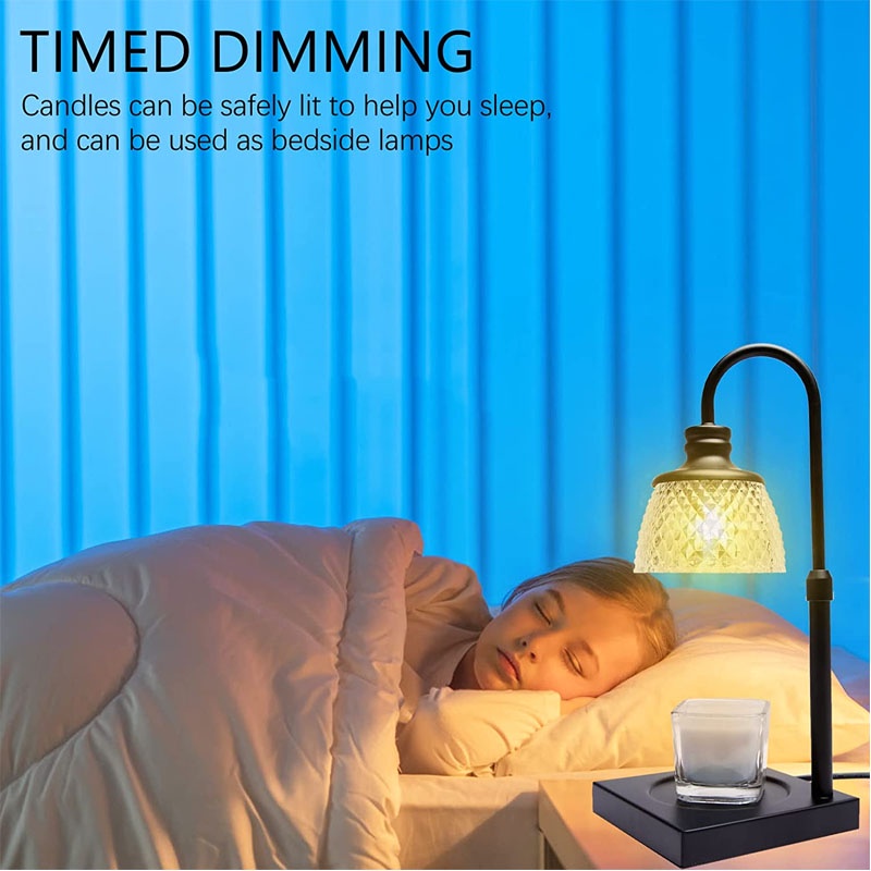 Candle Warmer Lamp, Auto Shut Off with Timer Control, Brightness Heat Level Control with Dimmable Switch, Height Adjustable Top-Down Candle Melting with 2 Bulbs