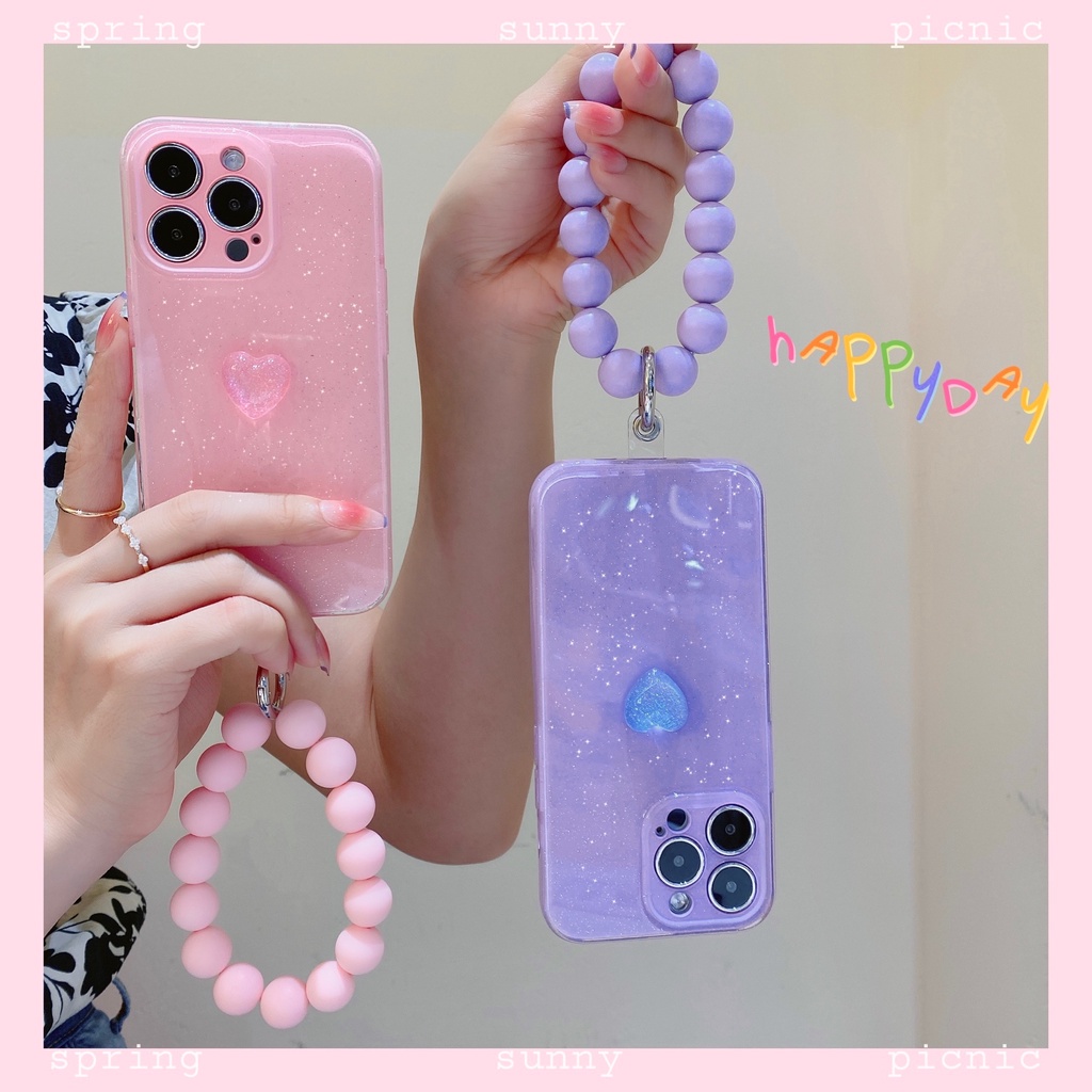 Candy 3D Love Beads Strap Glitter Case For iPhone 14 13 12 11 Pro Max 14 Pro X XR XS Max 7 8 Plus Luxury Bling Shockproof Camera Protection Soft Silicone Back Cover