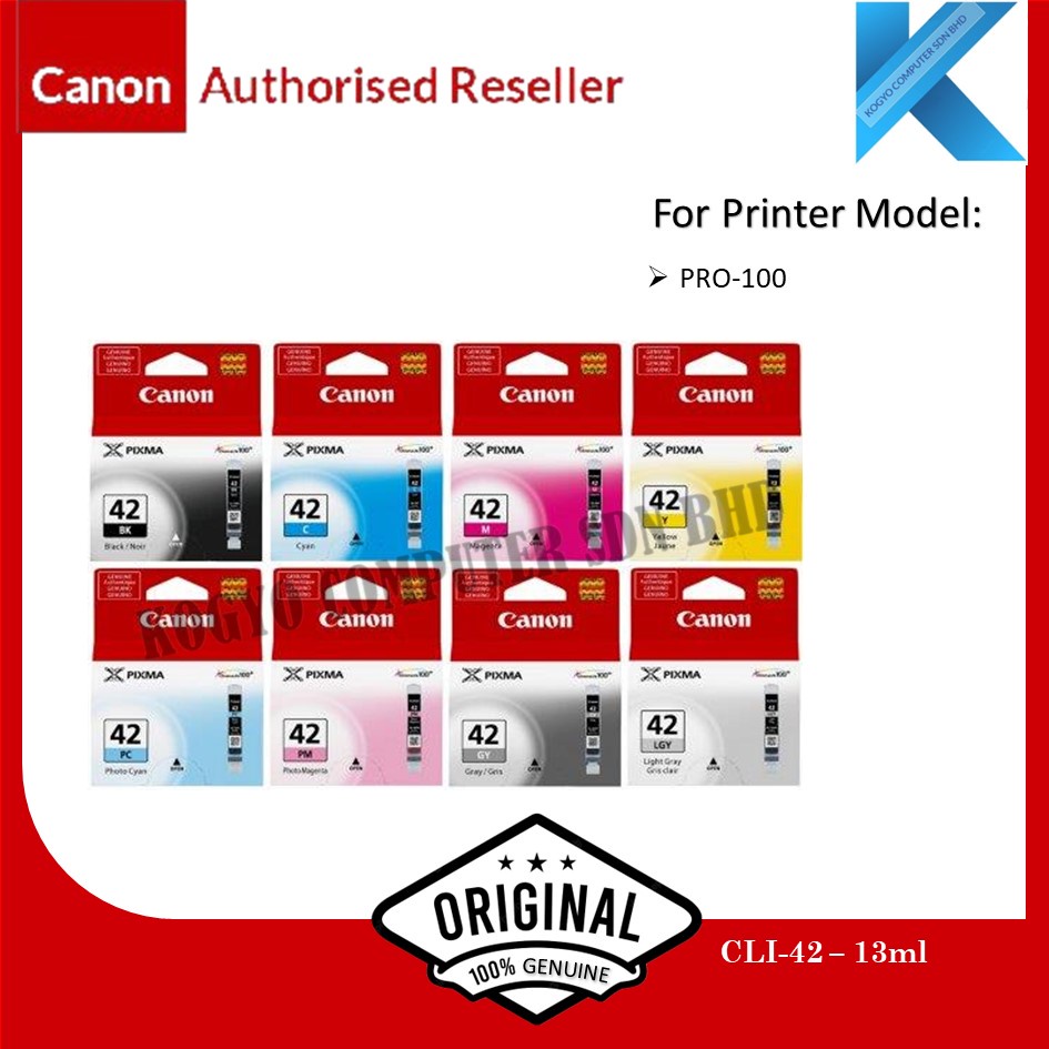 Canon CLI-42 Ink (Genuine) Photo Black Cyan Magenta Yellow Gray PRO-100 CLI42