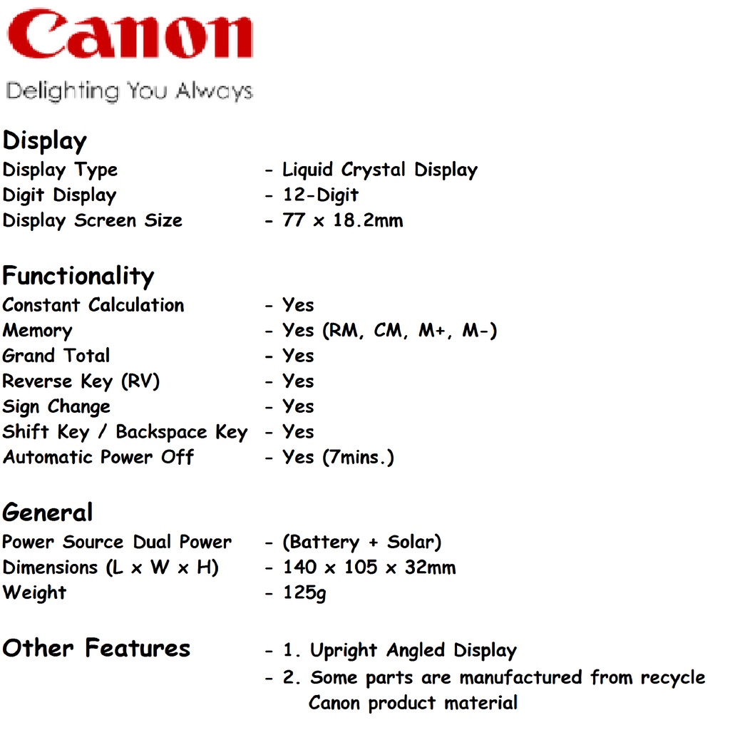 Canon Calculator 12 Digit LS-120Hi LS120 LS 120 (ORI)