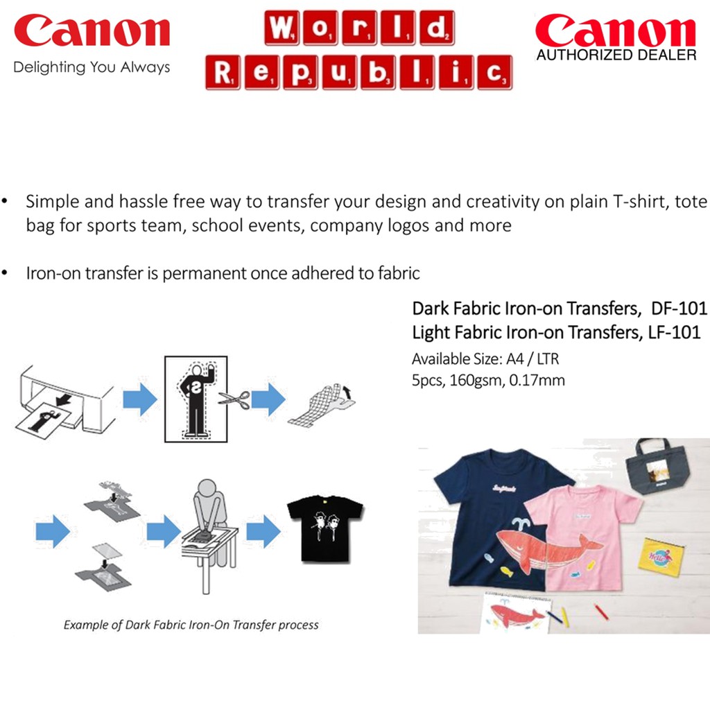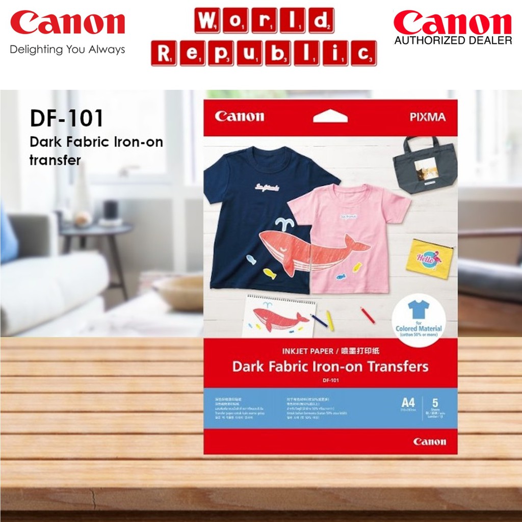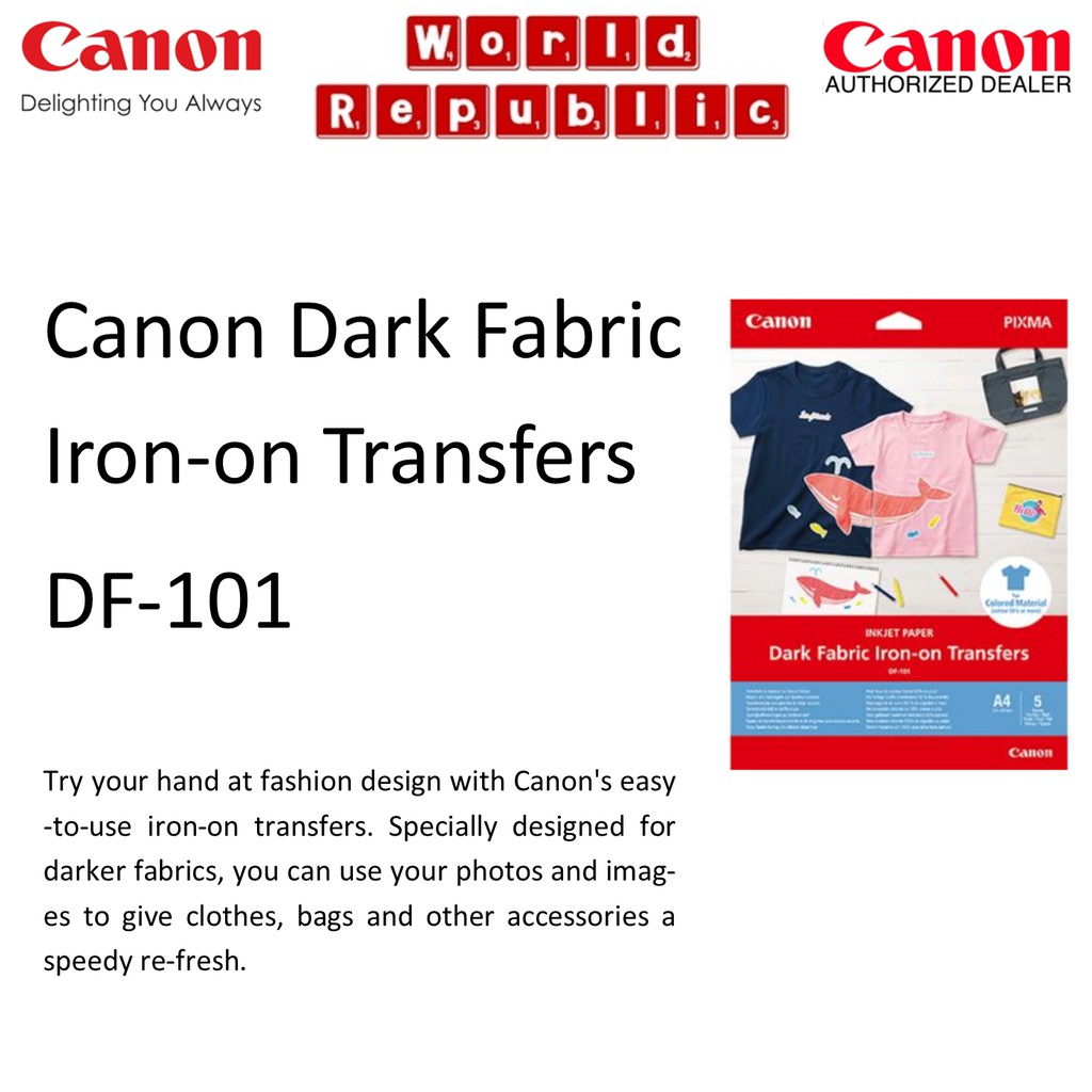 Canon DF-101 DF101 Dark Fabric Iron-On Transfers paper (160gsm/0.17mm) For Coloured Fabric - A4 Size - 5 sheets per pack