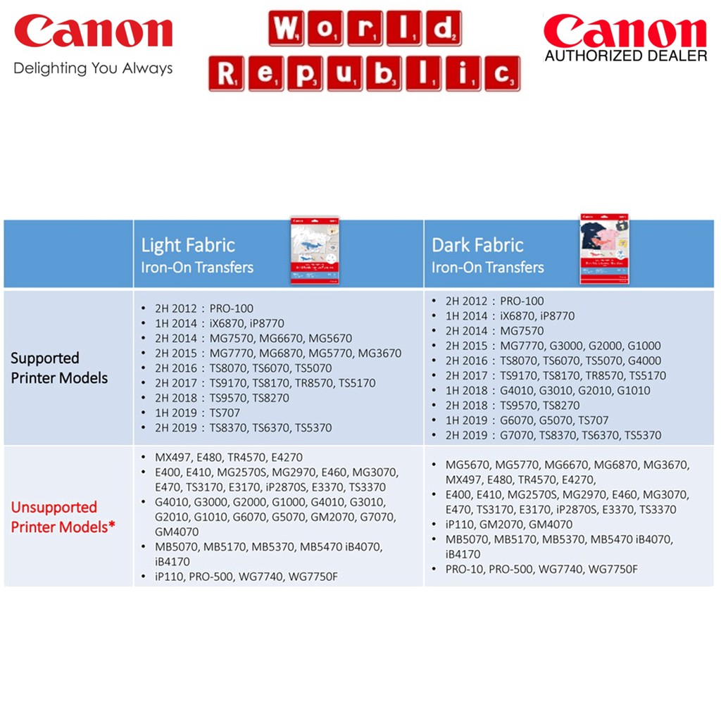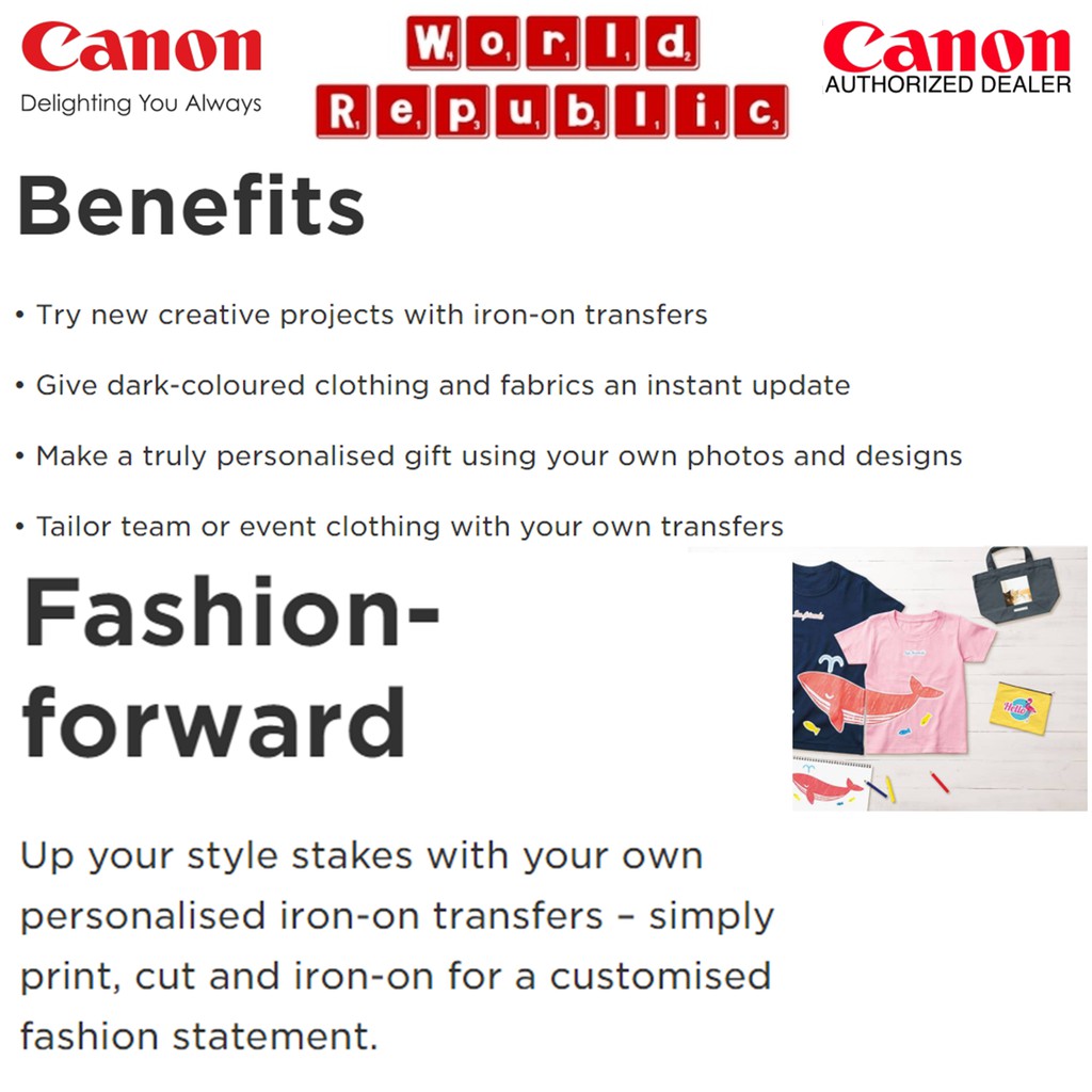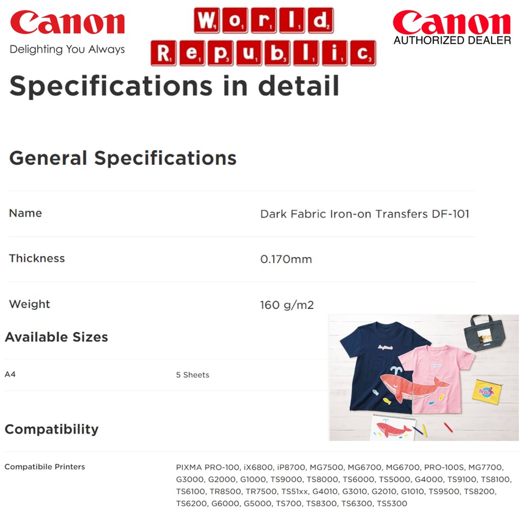 Canon DF-101 DF101 Dark Fabric Iron-On Transfers paper (160gsm/0.17mm) For Coloured Fabric - A4 Size - 5 sheets per pack