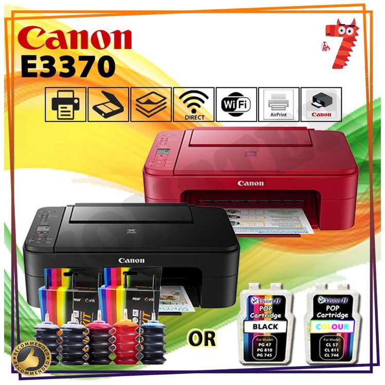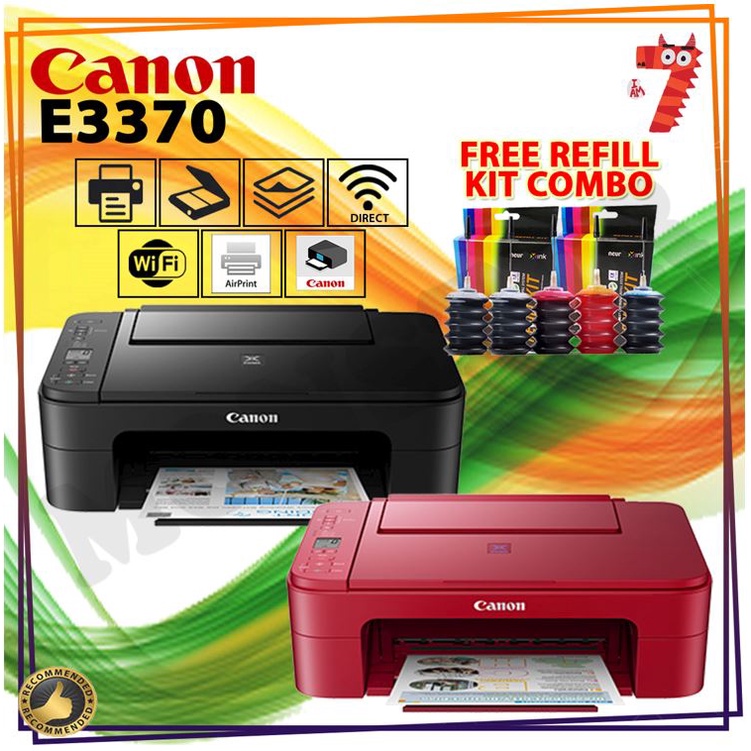 Canon E3370 Pixma Wireless All-in-One (PRINT, SCAN, COPY) Printer (Replacement model for E3170) FOC REFILL KIT COMBO