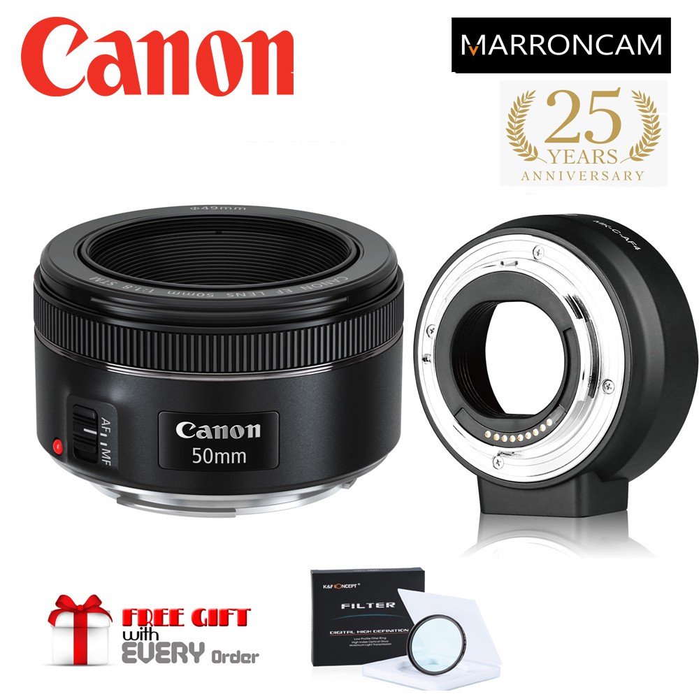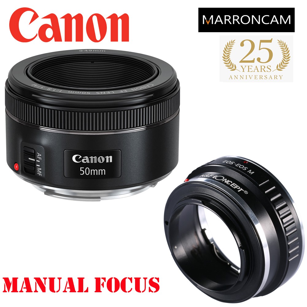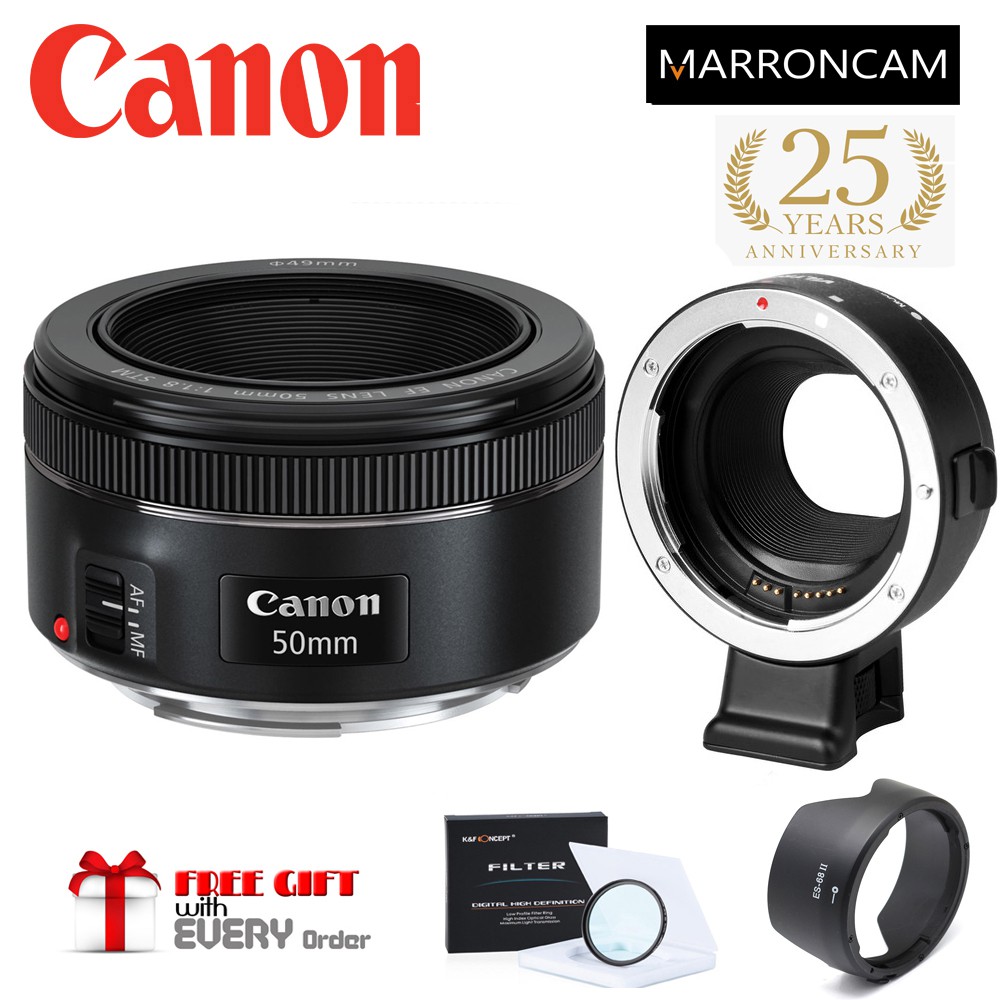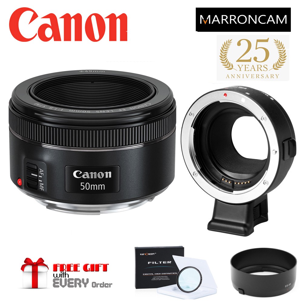 Canon EF 50mm f/1.8 STM Lens with EF-M Adapter combo (DESIGNED FOR MIRRORLESS M100,M50,M200,M50KII,M5,M6,M6MKII ETC)