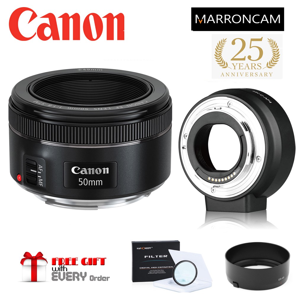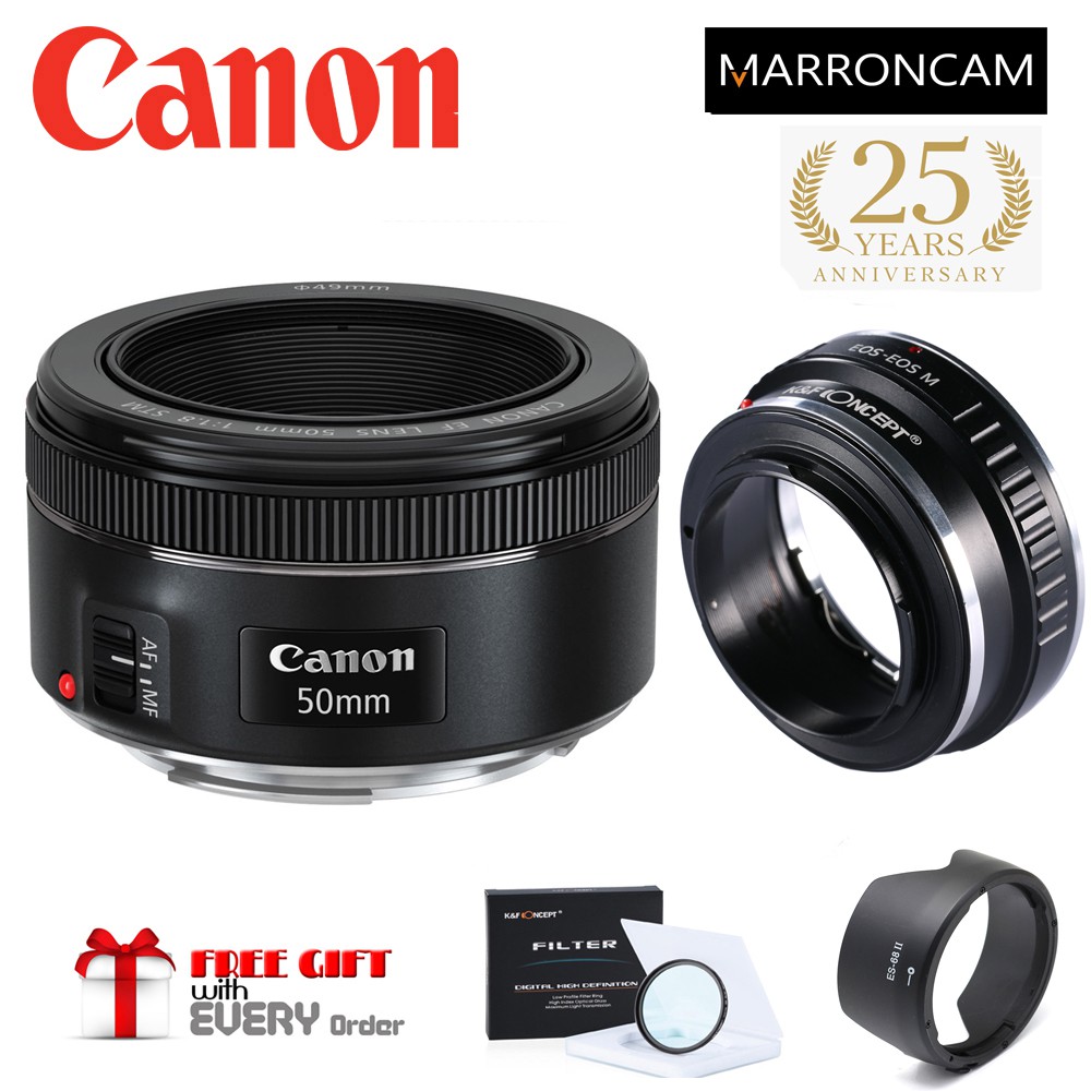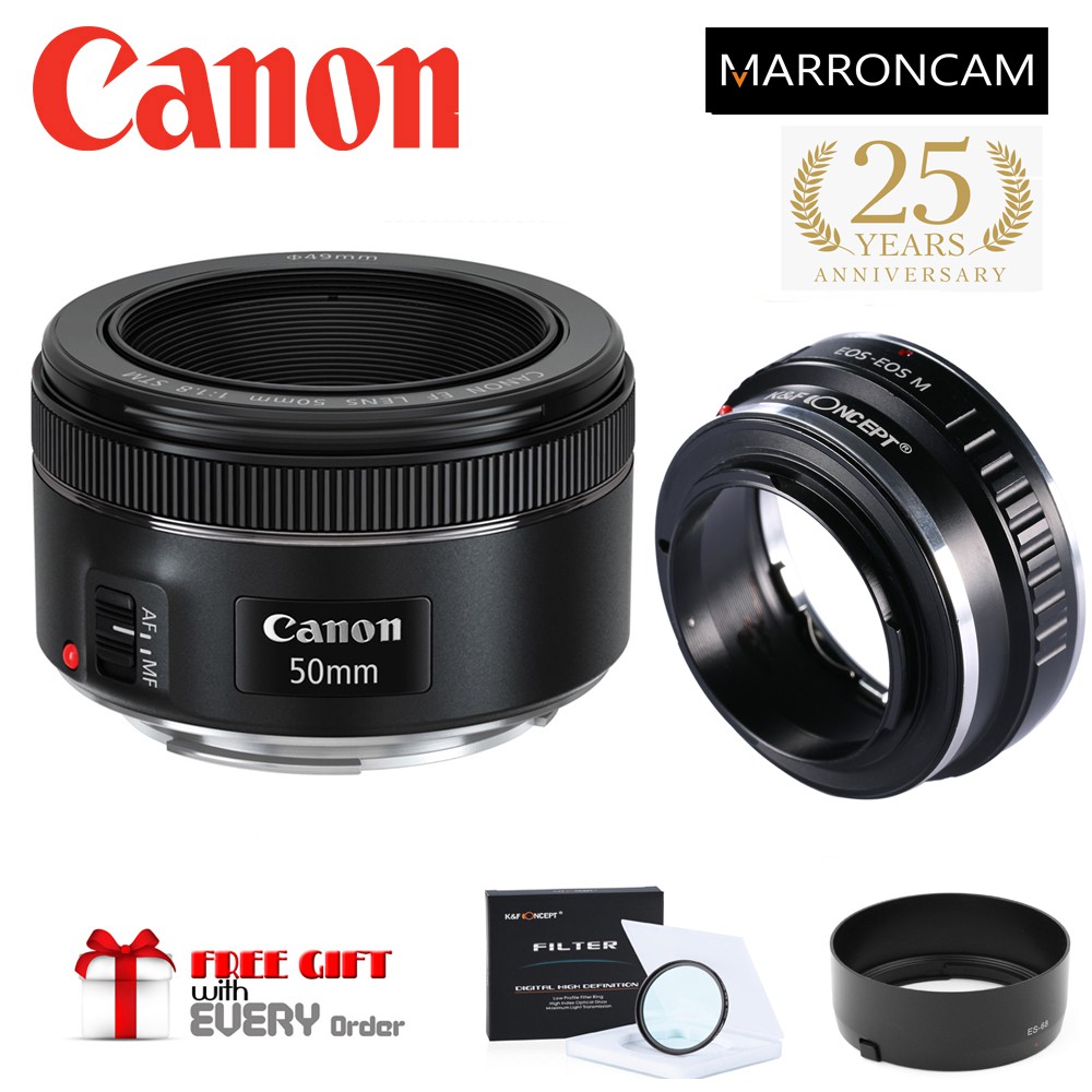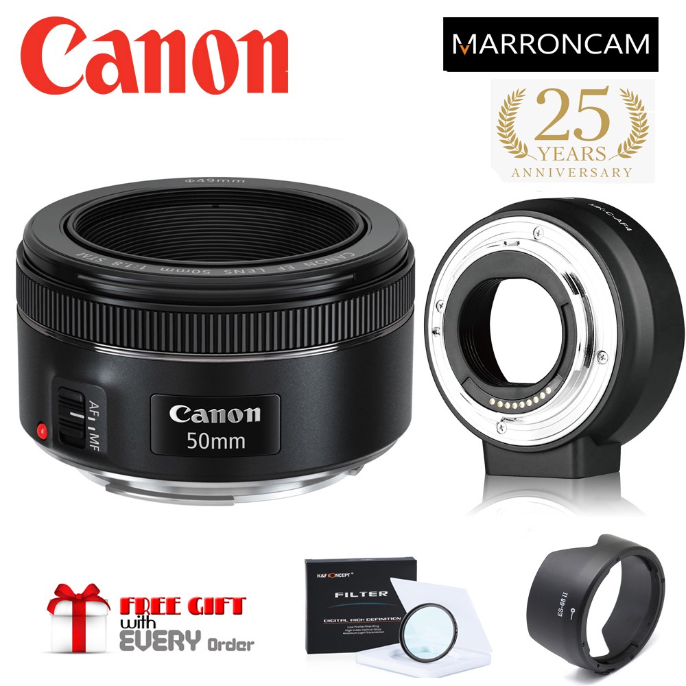 Canon EF 50mm f/1.8 STM Lens with EF-M Adapter combo (DESIGNED FOR MIRRORLESS M100,M50,M200,M50KII,M5,M6,M6MKII ETC)