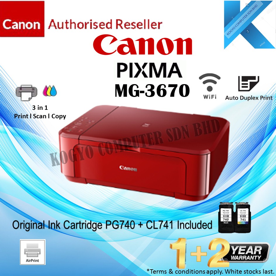 Canon MG3670 Pixma Wireless Photo All-In-One Color Inkjet Printer (Red)