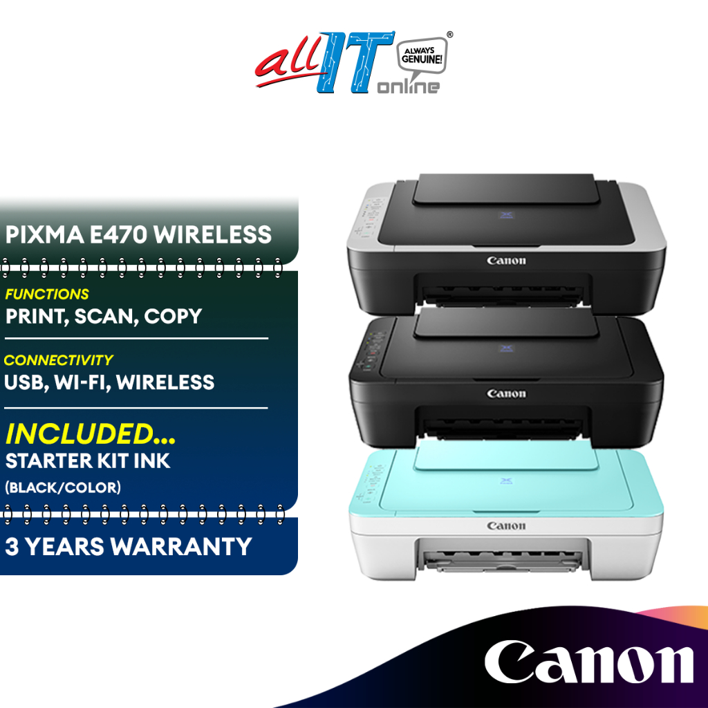 Canon PIXMA E470 Wireless All-In-One Inkjet Printer Similar with 2676 2776 2777 G3010 G3020 J200 T420W T520W L3210 L3250