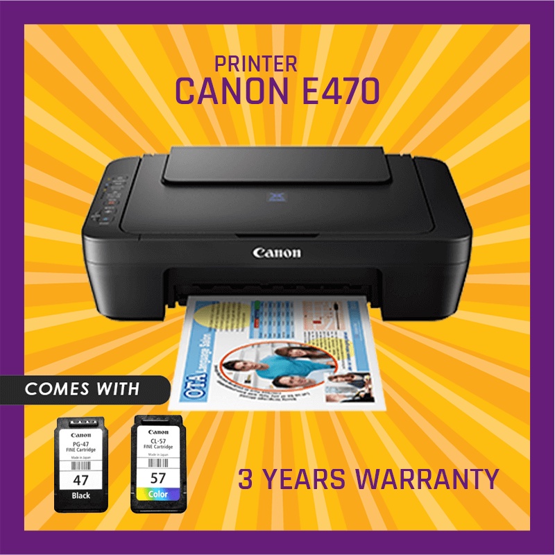 Canon Pixma 3 in 1 (Print Scan Copy) With WIFI Color Inkjet Printer E470 E 470 (Use PG-47 PG47 CL-57 CL57 Ink Cartridge)