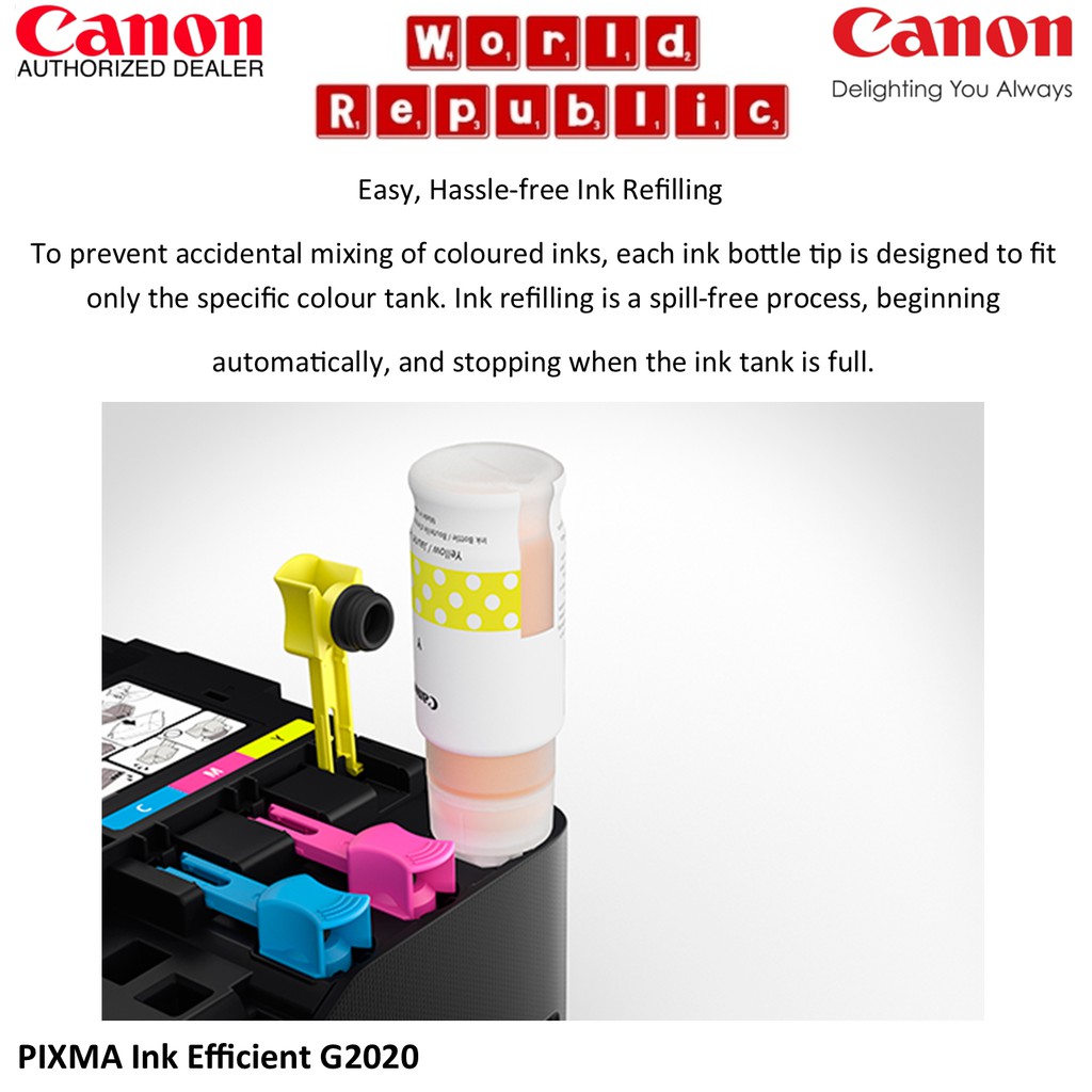 Canon Printer PIXMA G2020 Easy Refillable Ink Tank, All-In-One Printer for High Volume Printing - GI-71BK/C/M/Y