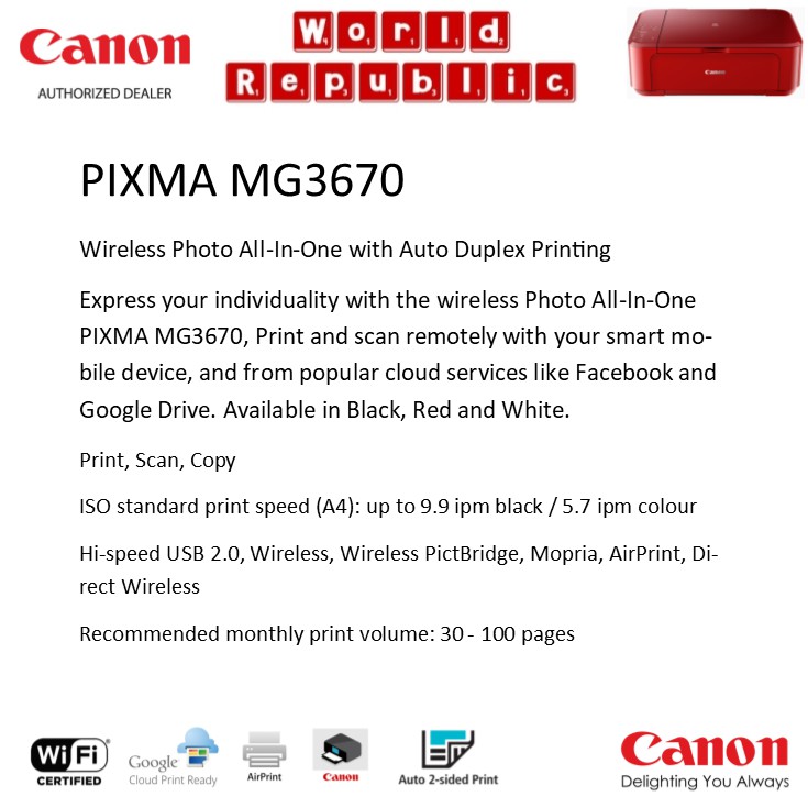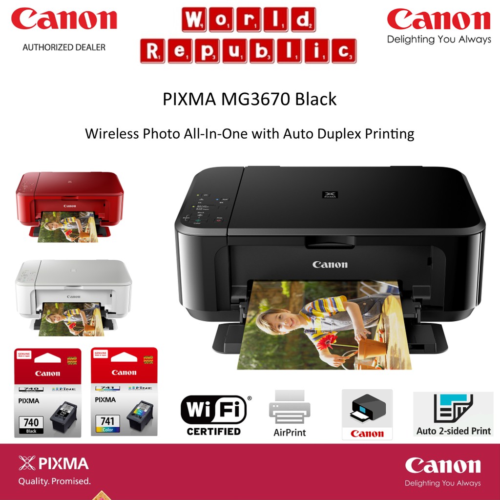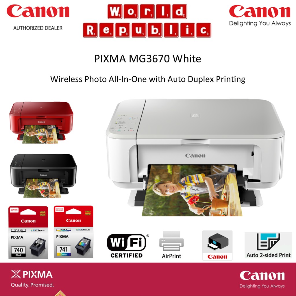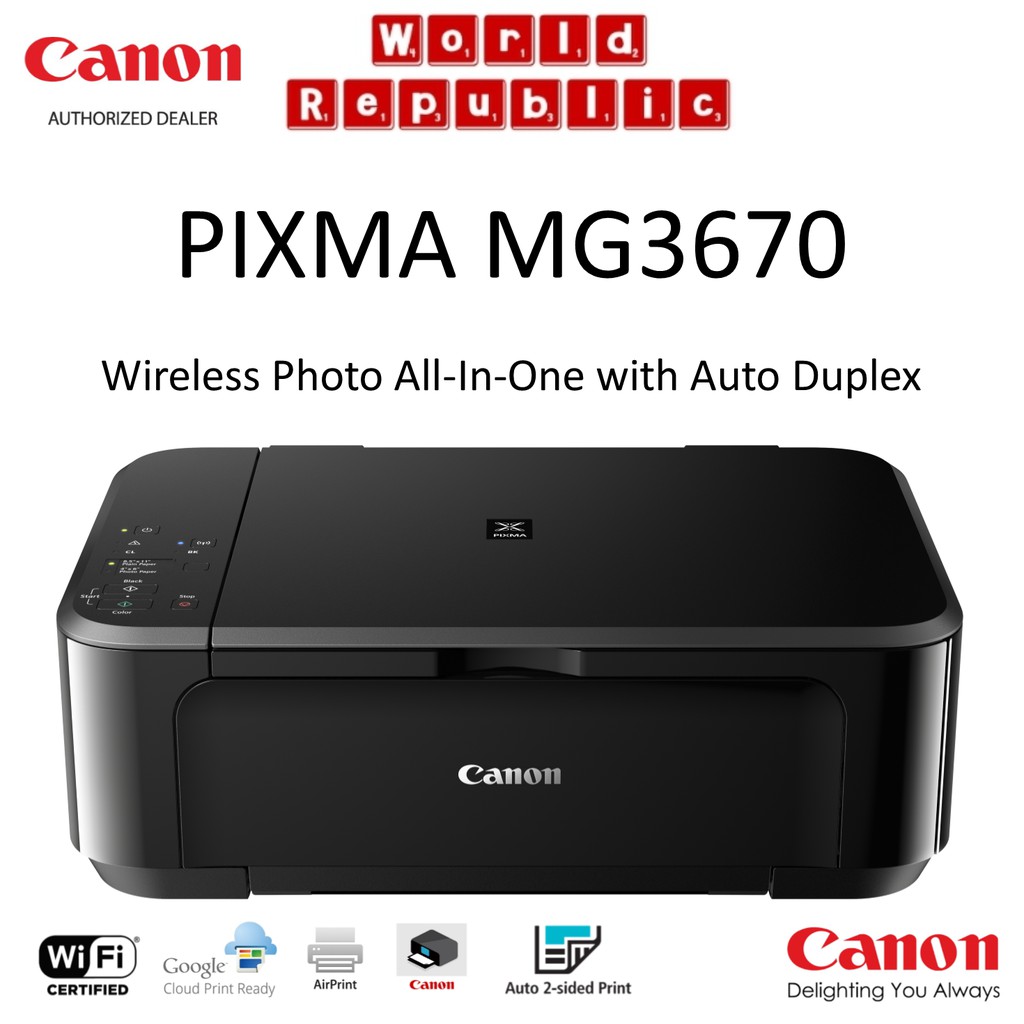 Canon Printer Wireless PIXMA MG3670 Photo All-In-One with Auto Duplex Printing - 100% Brand New Authentic Canon Malaysia