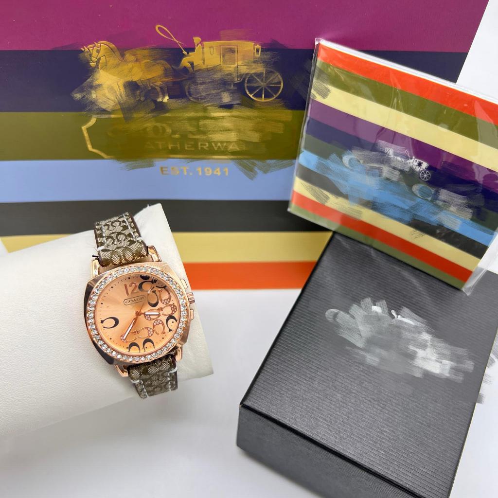 Caoch diamond analog jam tangan wanita rosegold colour case full set with box booklet paperbag malaysia ready stock