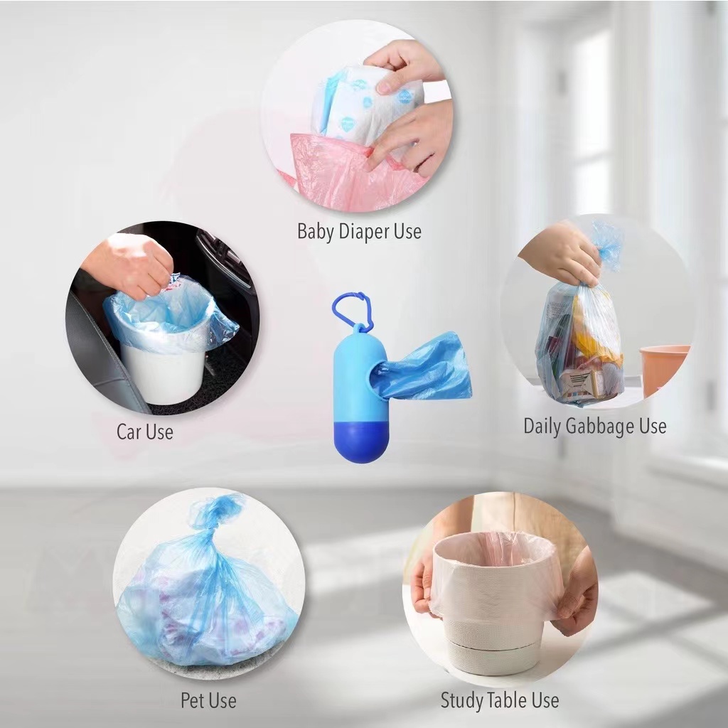 Capsule Rubbish Bag Disposable Dispenser Refill Garbage Portable Poop Shit Bag Plastic Pet Baby Diaper Beg Sampah Myvi B