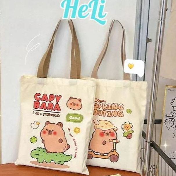 (LARGE TOTE) CAPYBARA TOTE BAG CUTE CANVAS BAG FOR WORK, PLAY, SCHOOL