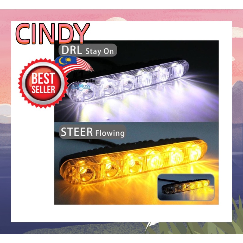 Car 6 LED Daytime Running Light Daylight With Turn Signal Flowing Auto DRL